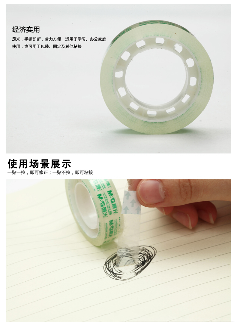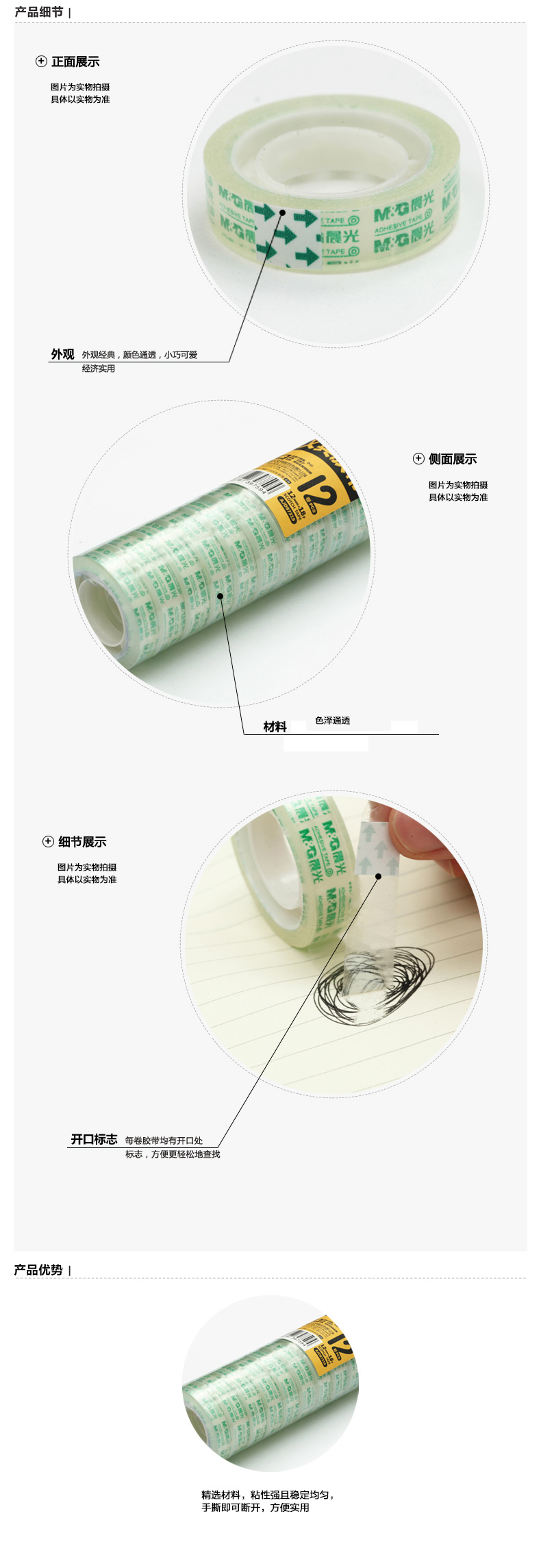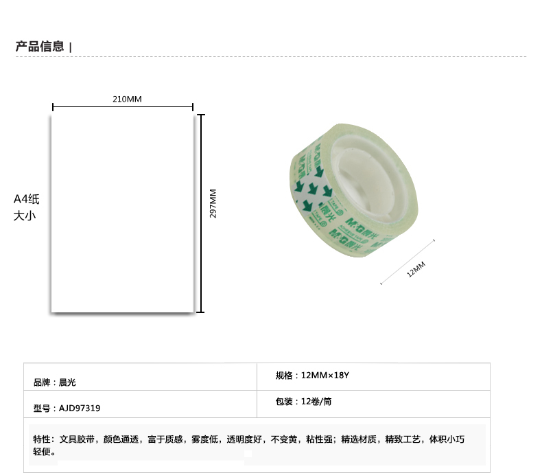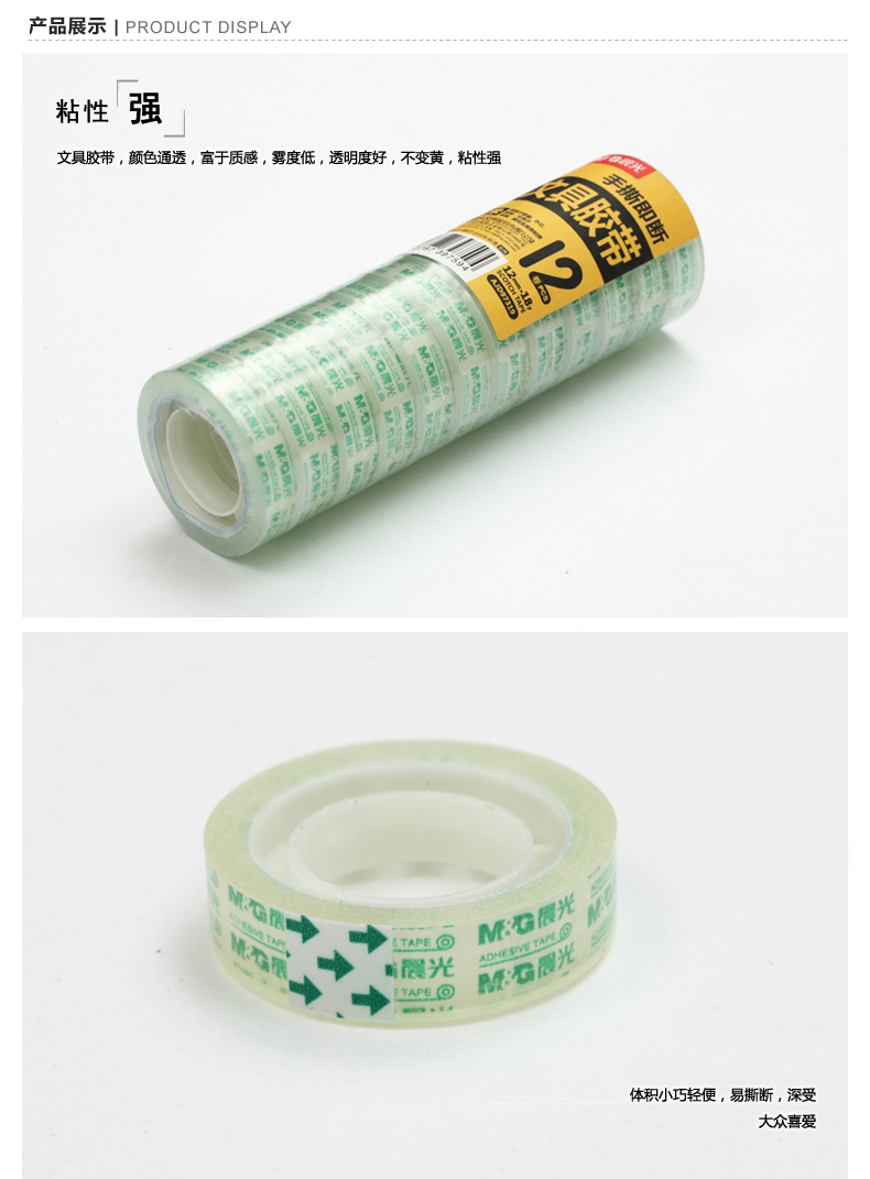• 商品名称:晨光(M&G)AJD97319 透明小胶带 文具胶带12mm*18y(12卷)