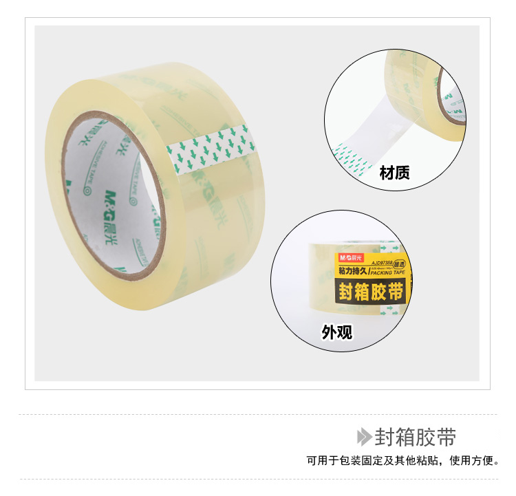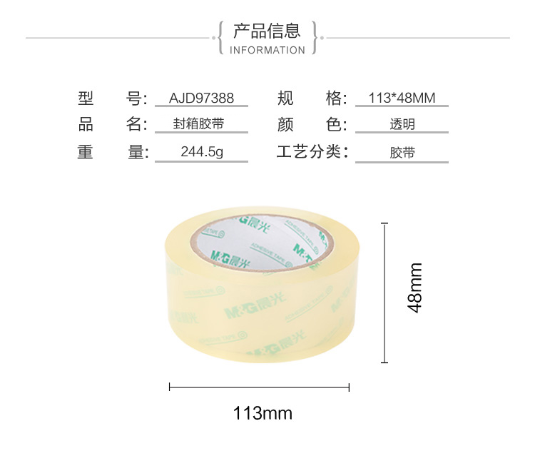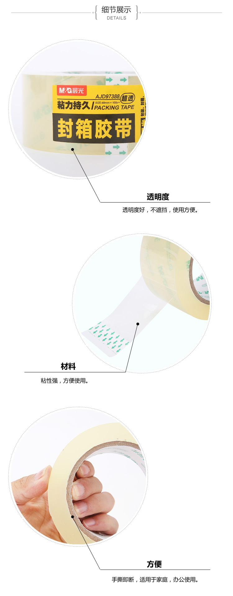 • 商品名称:晨光(M&G)AJD97388 透明胶带 超透明封箱胶带48mm*100y*91.4米