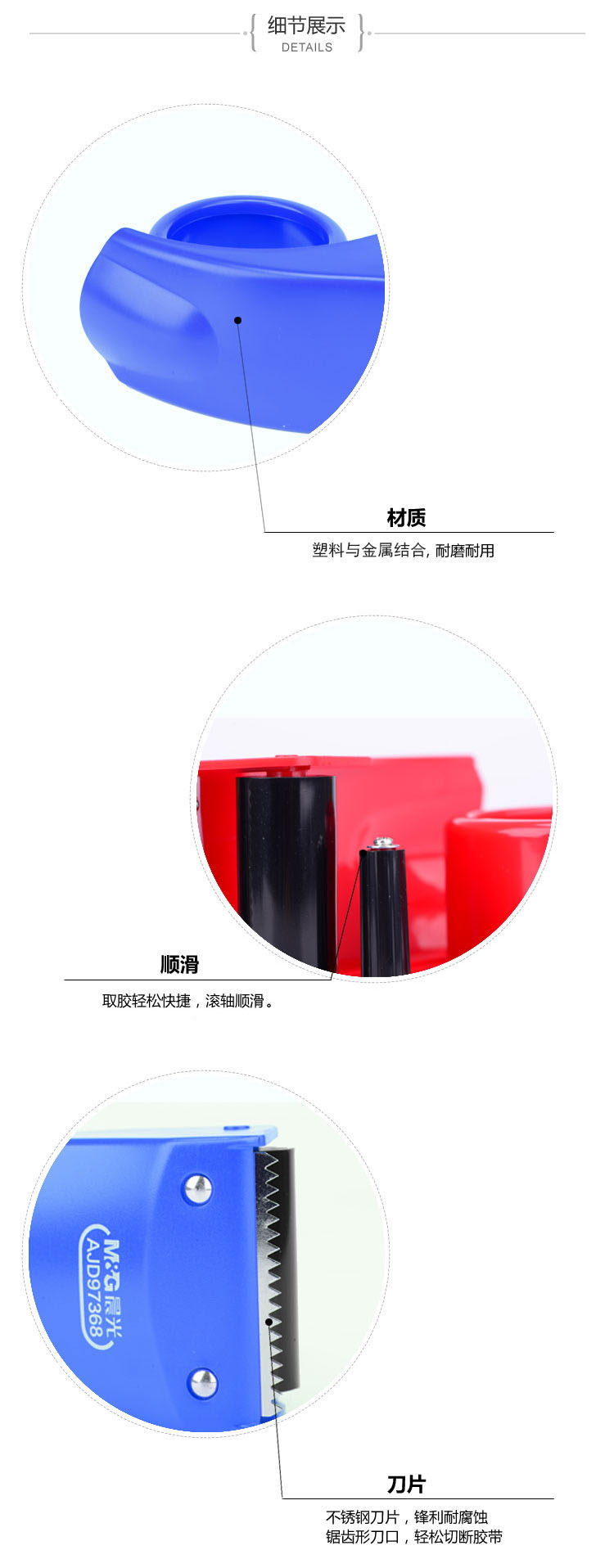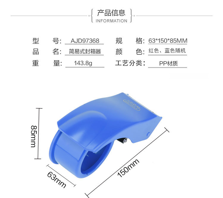 • 商品名称:晨光(M&G) AJD97368 简易式胶带座 48mm封箱器 胶带切割器 单个装红蓝随机 (封箱器48mm)