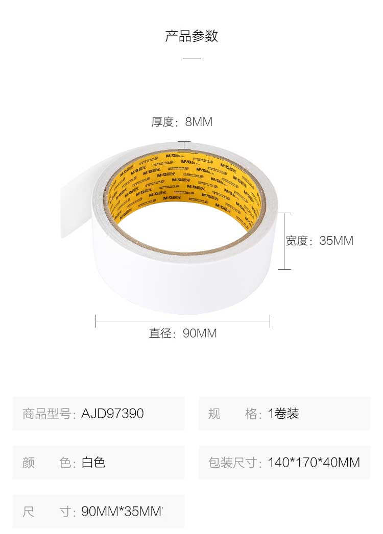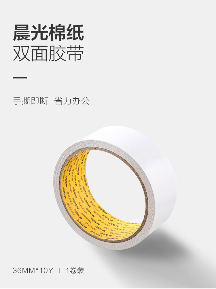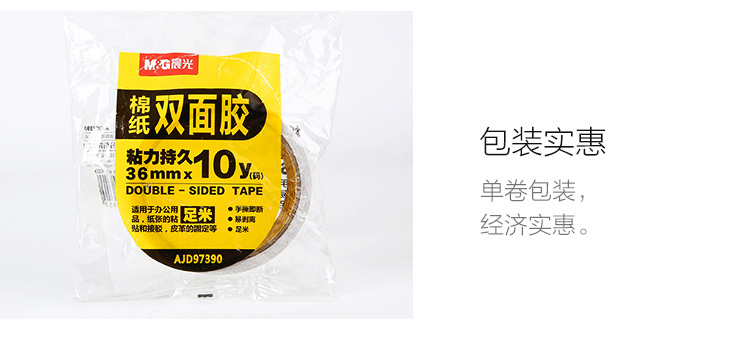 • 商品名称:晨光(M&G) AJD97390 双面胶 高粘性棉纸胶带 36mm*10y(9.1m/卷) 单卷装36mm*10y