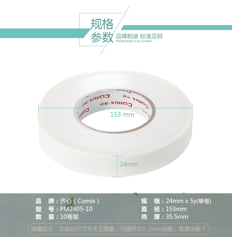 • 商品名称:齐心(COMIX) PM2405-10 双面泡棉胶带 海绵胶带泡沫胶带 24mm*5y 4.57米/卷 10卷装