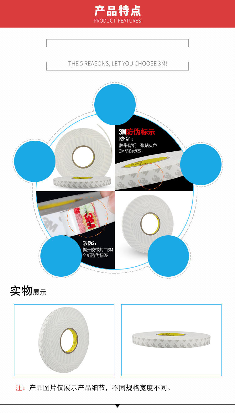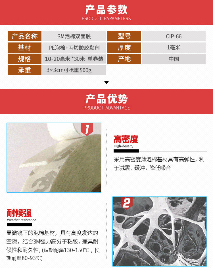 • 商品名称:3M CIP66 双面强力泡棉胶带 白色泡沫胶带双面胶20mm*30米 单卷装