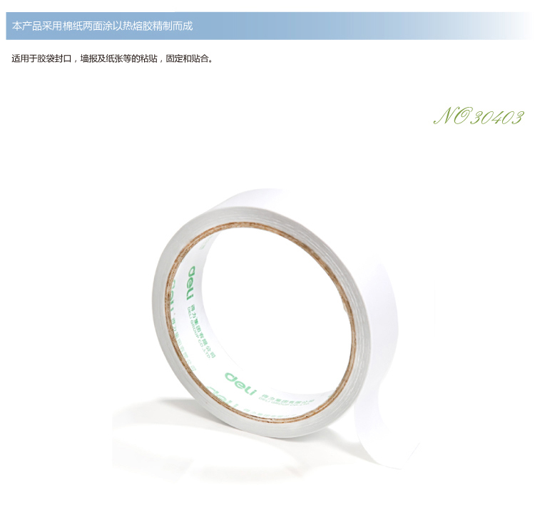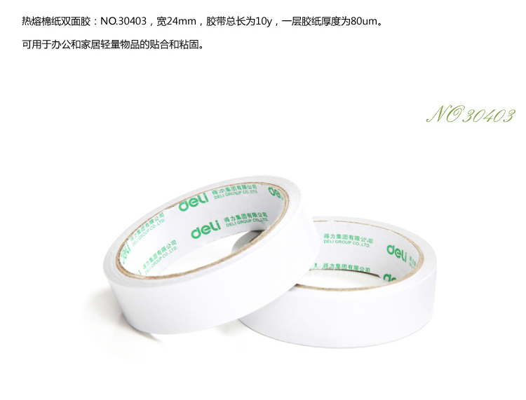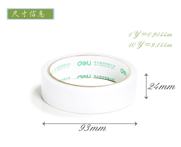 • 商品名称:得力(deli)30403 棉纸双面胶带24mm*10y(9.1米)12卷/袋装