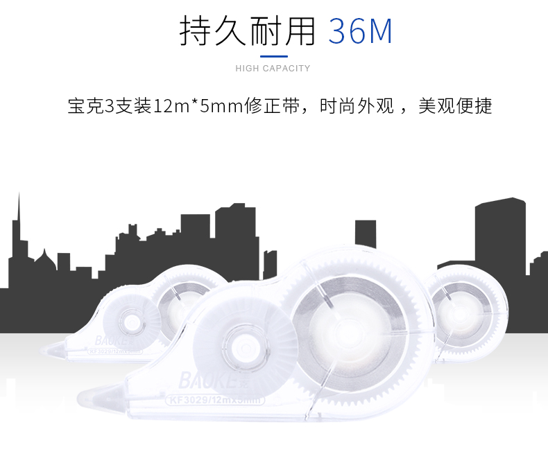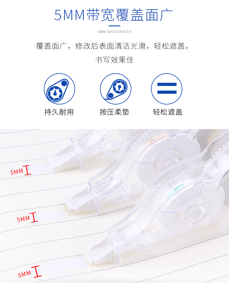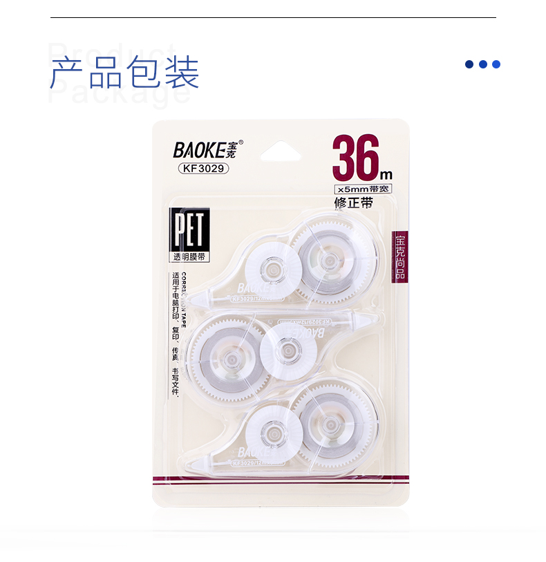 • 商品名称:宝克(BAOKE) KF3029 修正带涂改带 12M*5mm 3支/卡