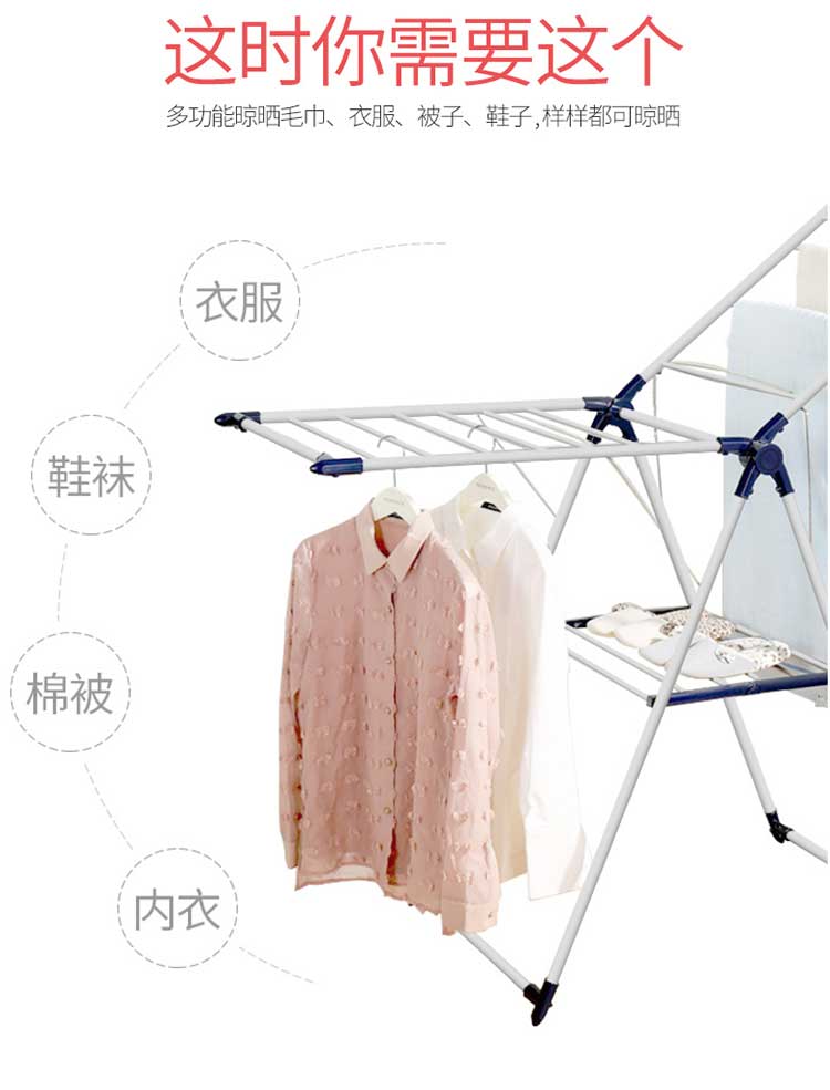 • 商品名称:雅高 LYJ004 晾衣架落地 折叠室内家用阳台晾衣神器 挂凉衣嗮衣杆儿童婴儿宝宝尿布架