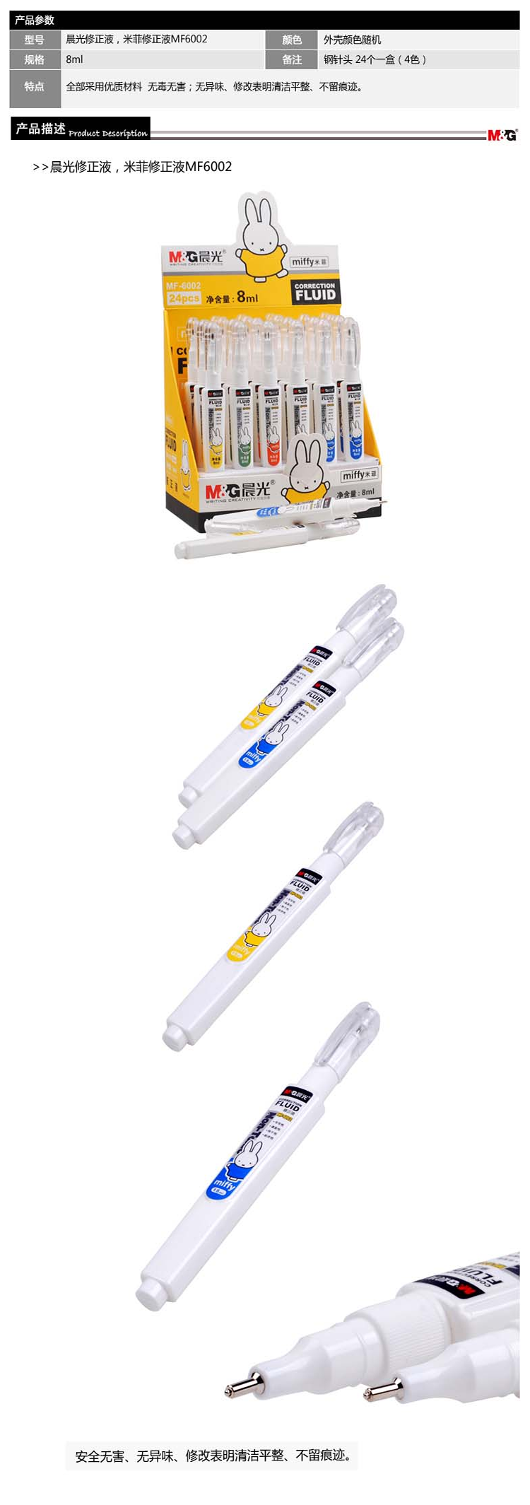 • 商品名称:晨光(M&G)MF6002 修正液涂改液 修正液 改正液 改错液8ML