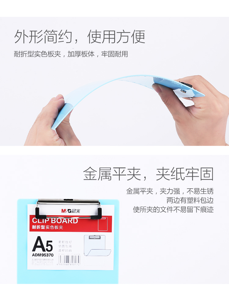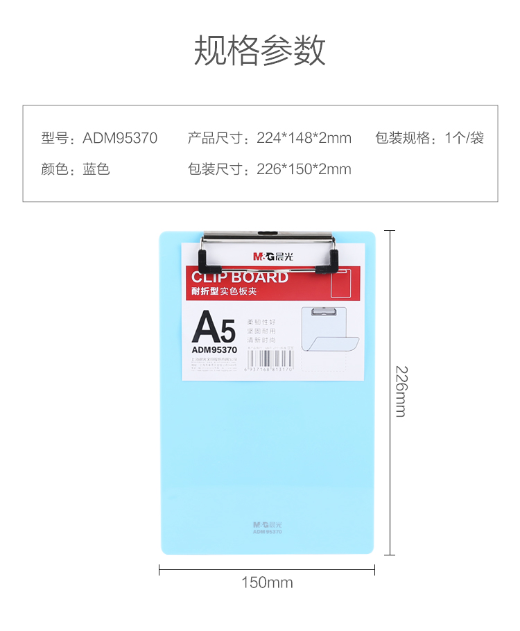 • 商品名称:晨光(M&G)ADM95370 耐折型A5板夹 书写垫板蓝色