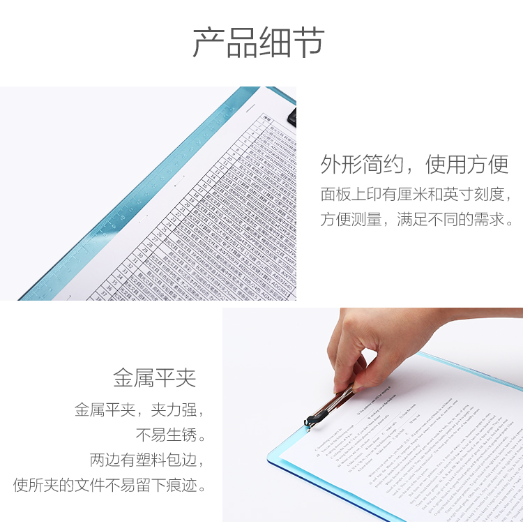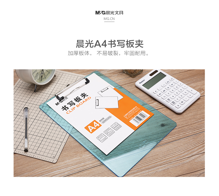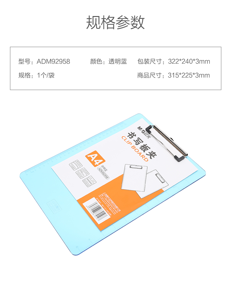 • 商品名称:晨光(M&G)ADM92958 A4文件板夹竖式平板夹垫板文件夹 透明蓝