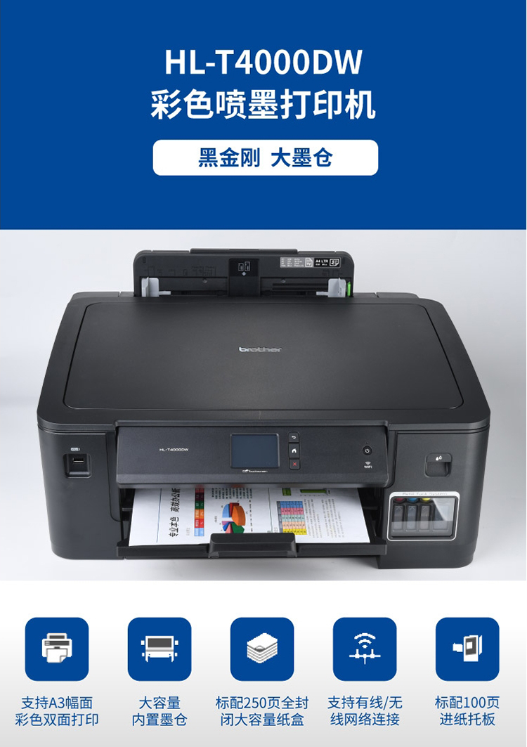 • 商品名称:兄弟(brother) HL-T4000DW A3彩色喷墨打印机 自动双面 无线网络 官方标配
