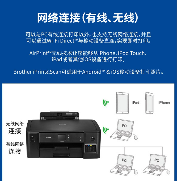 兄弟(brother) HL-T4000DW A3彩色喷墨打印机 自动双面 无线网络 官方标配