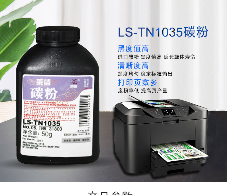 • 商品名称:莱盛(laser)LS-TN1035 瓶装碳粉(适用于BROTHER HL-1118,XEROX DocuPrint P115b/M115b/M115f/M115s)