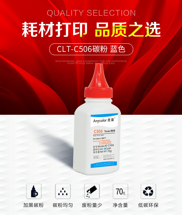 • 商品名称:欣彩(Anycolor)AT-C506 蓝色碳粉墨粉70g 适用三星CLP-680ND 680DW CLX-6260ND 6260FD