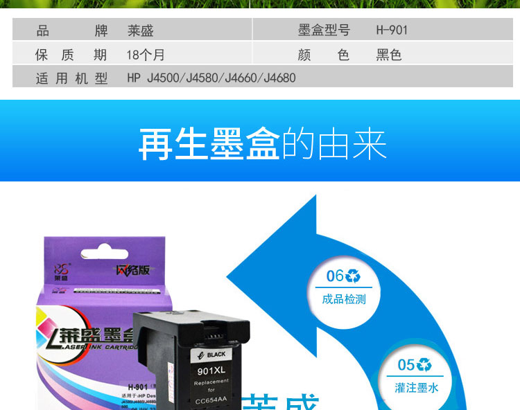 • 商品名称:莱盛(laser)H-901 喷墨打印机墨盒 黑色 (适用于HP J4500/J4580/J4660/J4680)
