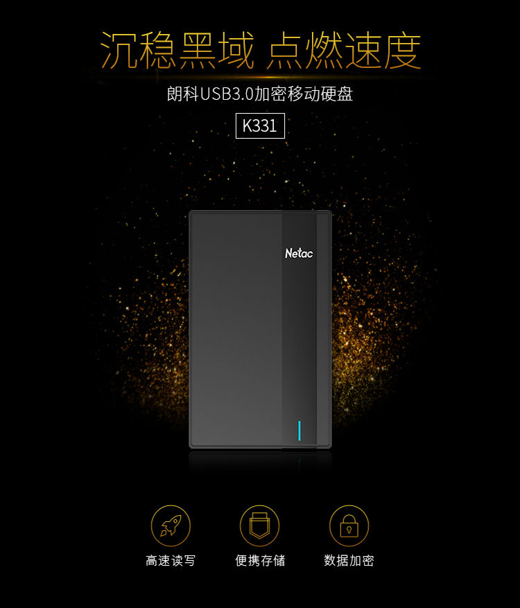 • 商品名称:朗科(Netac) K331/1TB USB3.0 移动硬盘 高端商务黑系列 2.5英寸 黑色