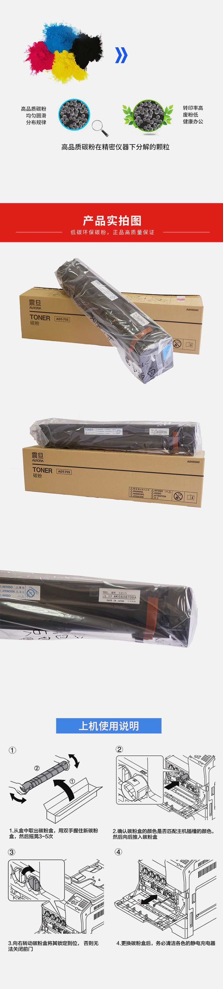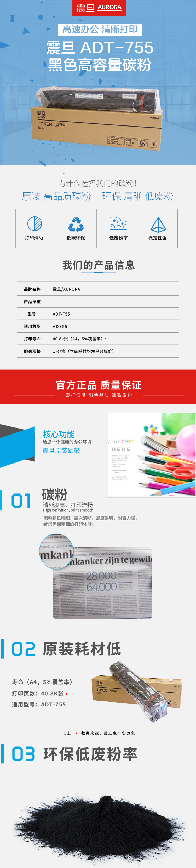 • 商品名称:震旦(AURORA)ADT-755 黑色高容量碳粉(适用AD755机器)约4万页