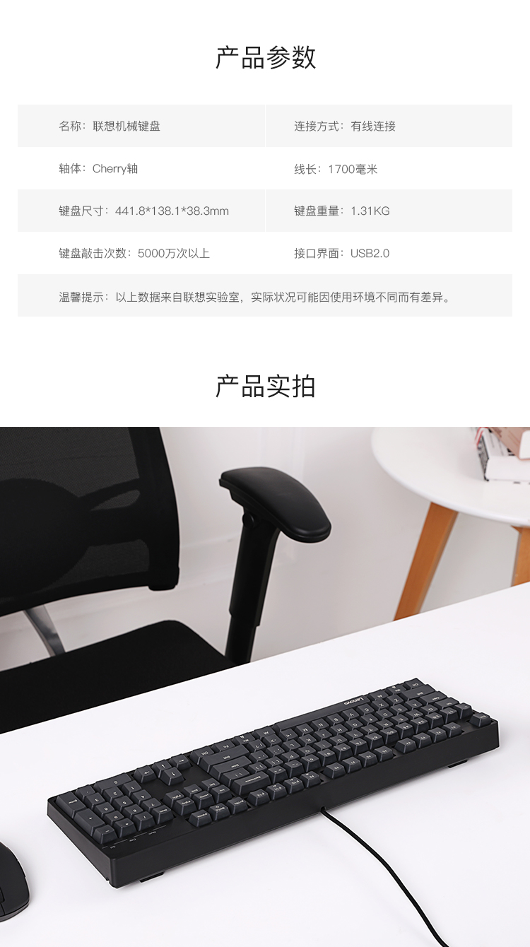 • 商品名称:联想(Lenovo) 104 键机械键盘 cherry轴 有线机械键盘 黑色
