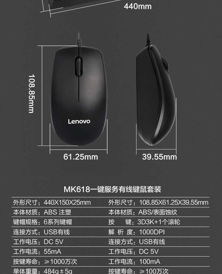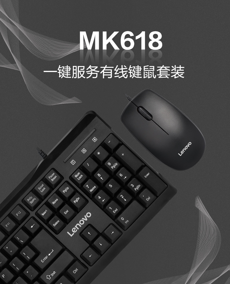 • 商品名称:联想(Lenovo) MK618 有线键鼠套装 办公家用有线键盘有线鼠标 黑色