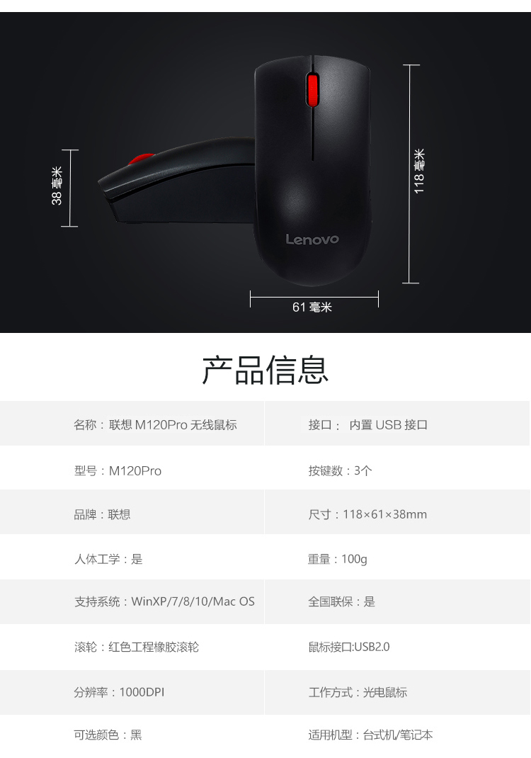 • 商品名称:联想(Lenovo) M120Pro 无线鼠标 大红点无线鼠标 台式机鼠标 笔记本鼠标