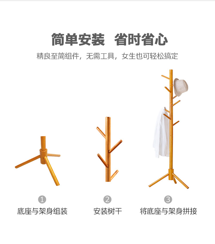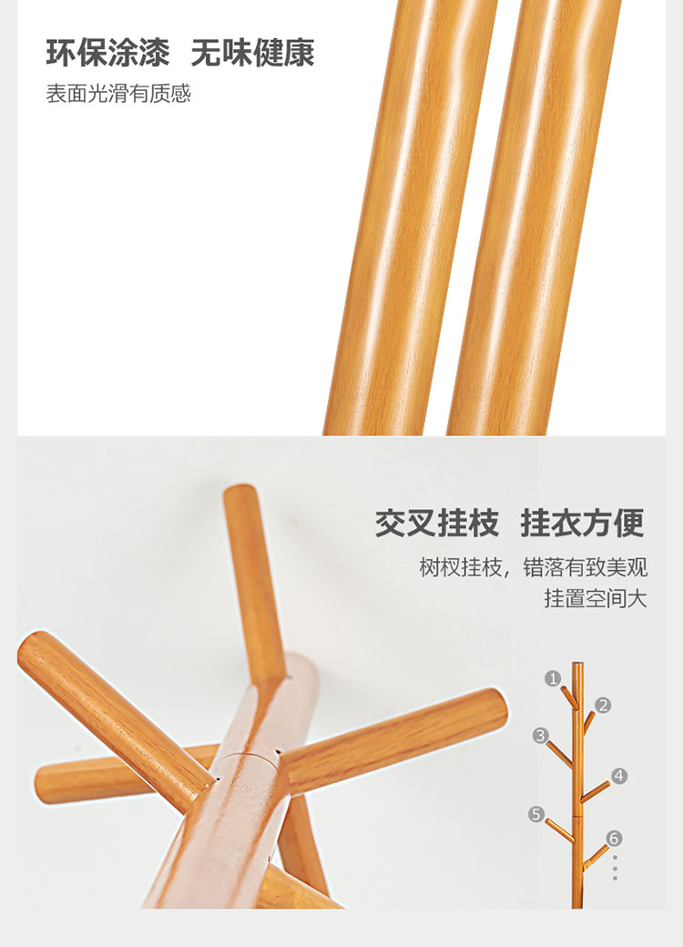 • 商品名称:溢彩年华 DKC5548 实木衣帽架落地挂衣架卧室置衣架简约衣服架子立式衣架挂包架 原木色