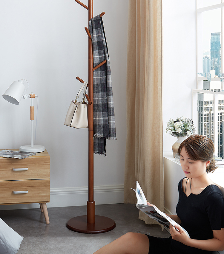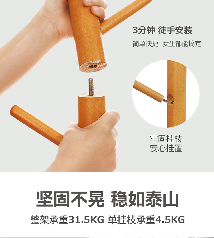 • 商品名称:溢彩年华 DKC5541 实木衣帽架落地挂衣架子立式衣服挂架木质置物架衣架杆 原木色