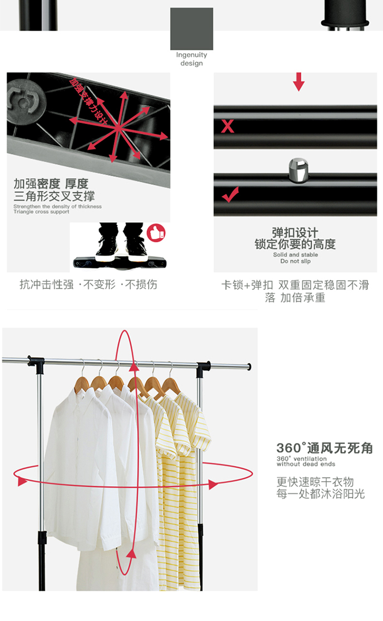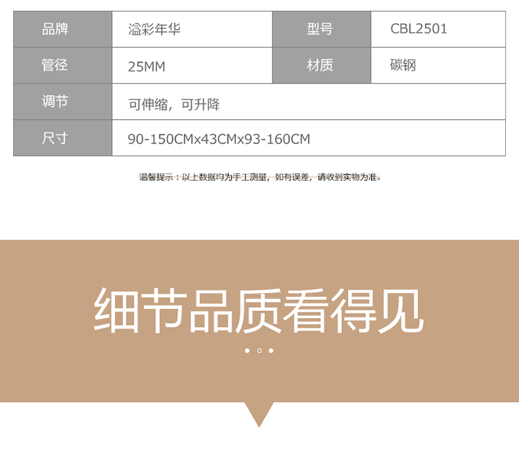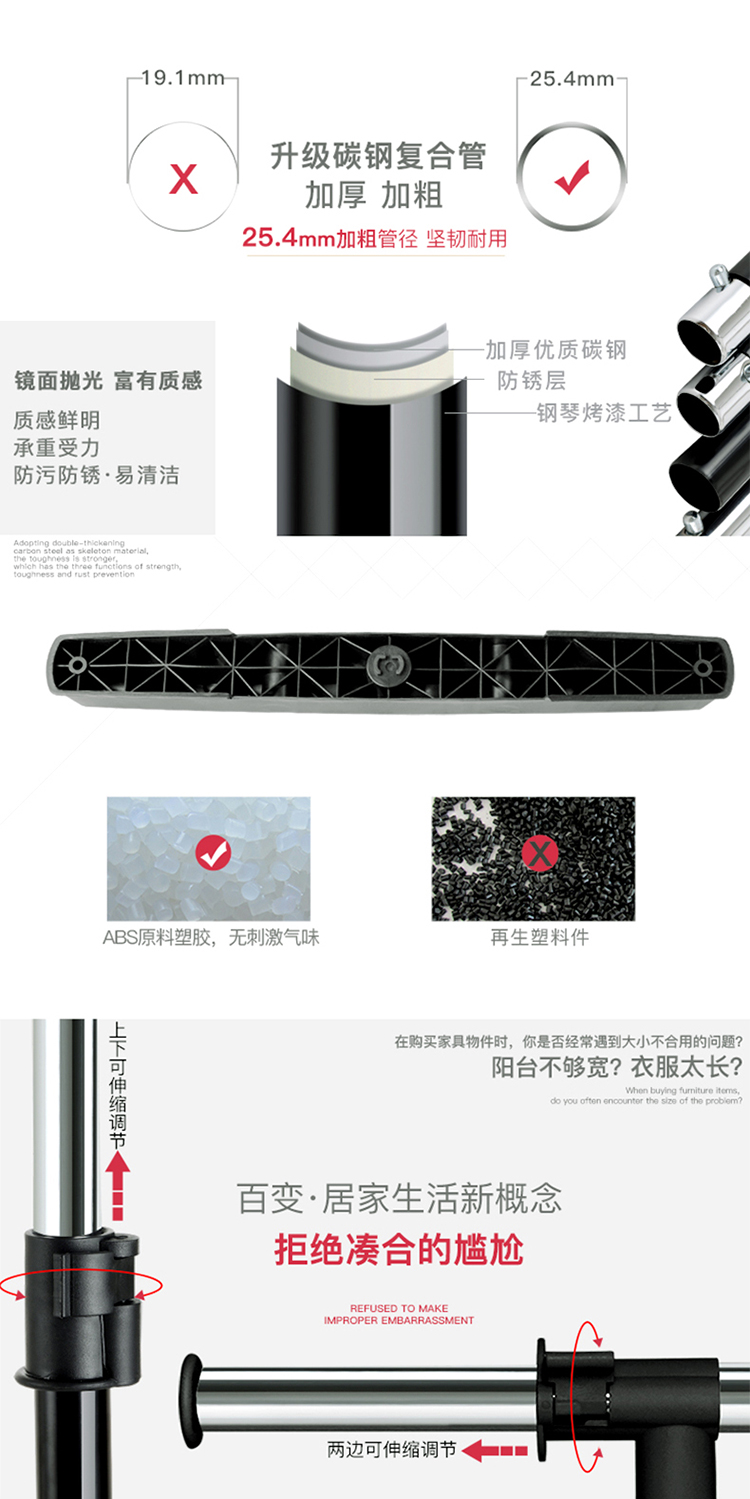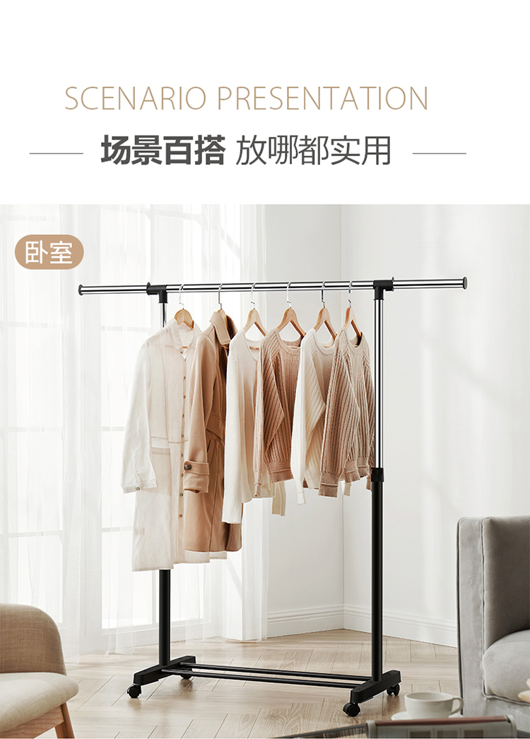 • 商品名称:溢彩年华 CBL2501 晾衣架 单杆伸缩晾晒架 弹扣加粗阳台黑色挂衣架 典雅黑