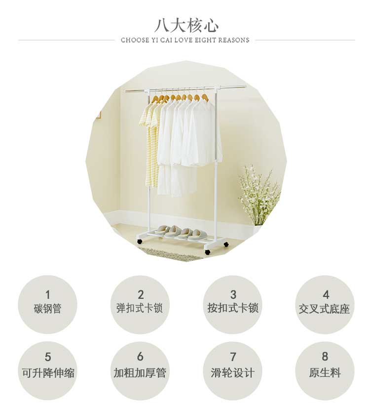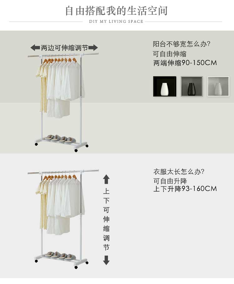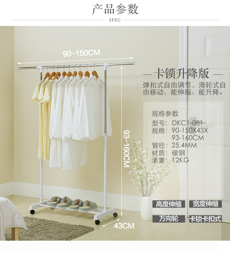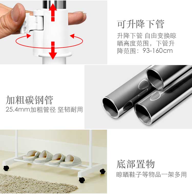 • 商品名称:溢彩年华 DKC1-081 晾衣架 落地晾衣杆 阳台晒衣架可移动伸缩挂衣架双承重单杆晾晒架 典雅白