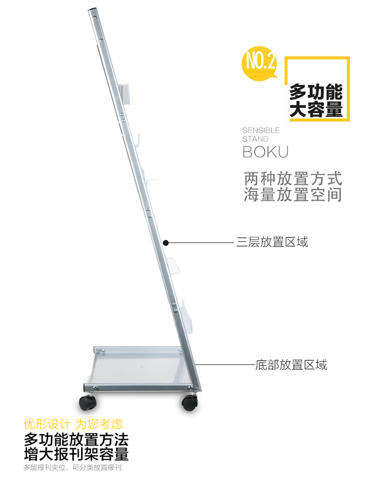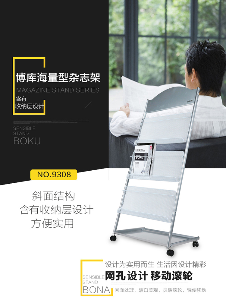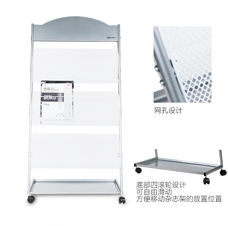 • 商品名称:得力(deli) 9308 三层金属报刊杂志架书刊架 宣传册展示架落地资料架 办公室置物架 高1.27米