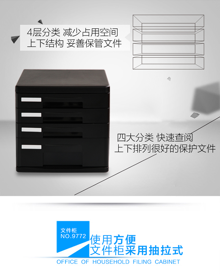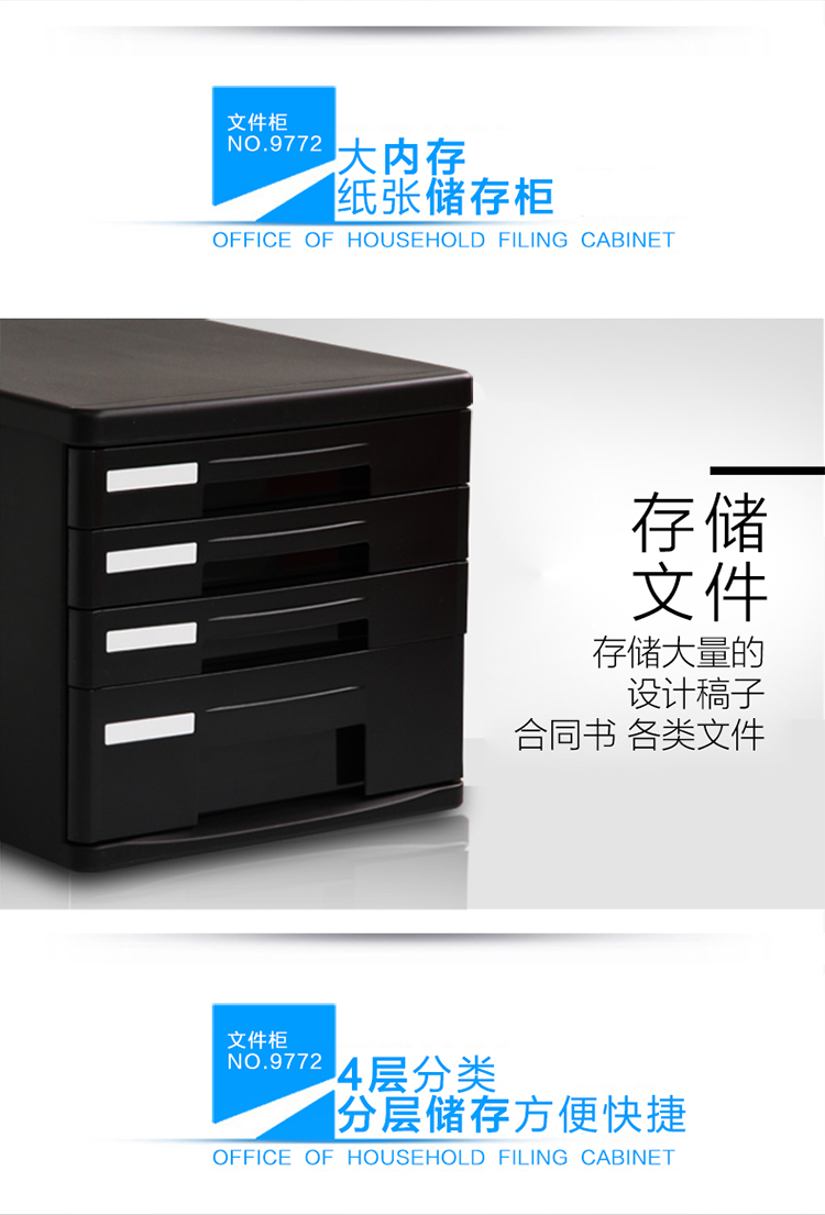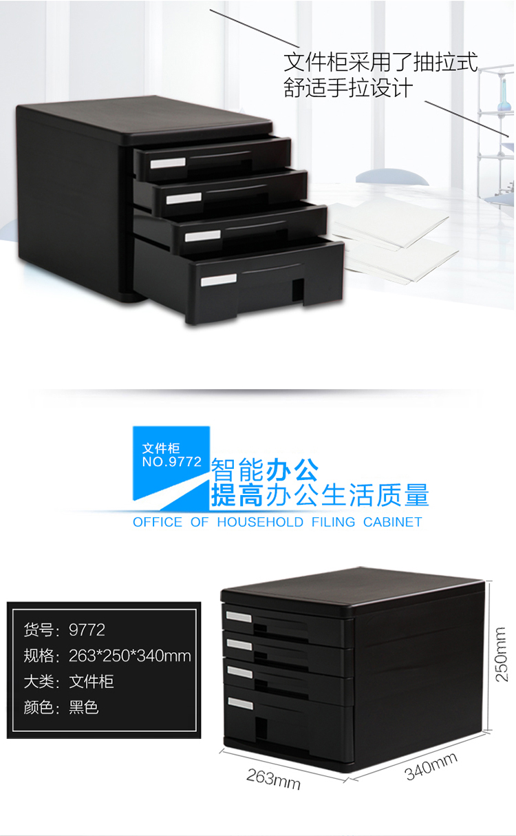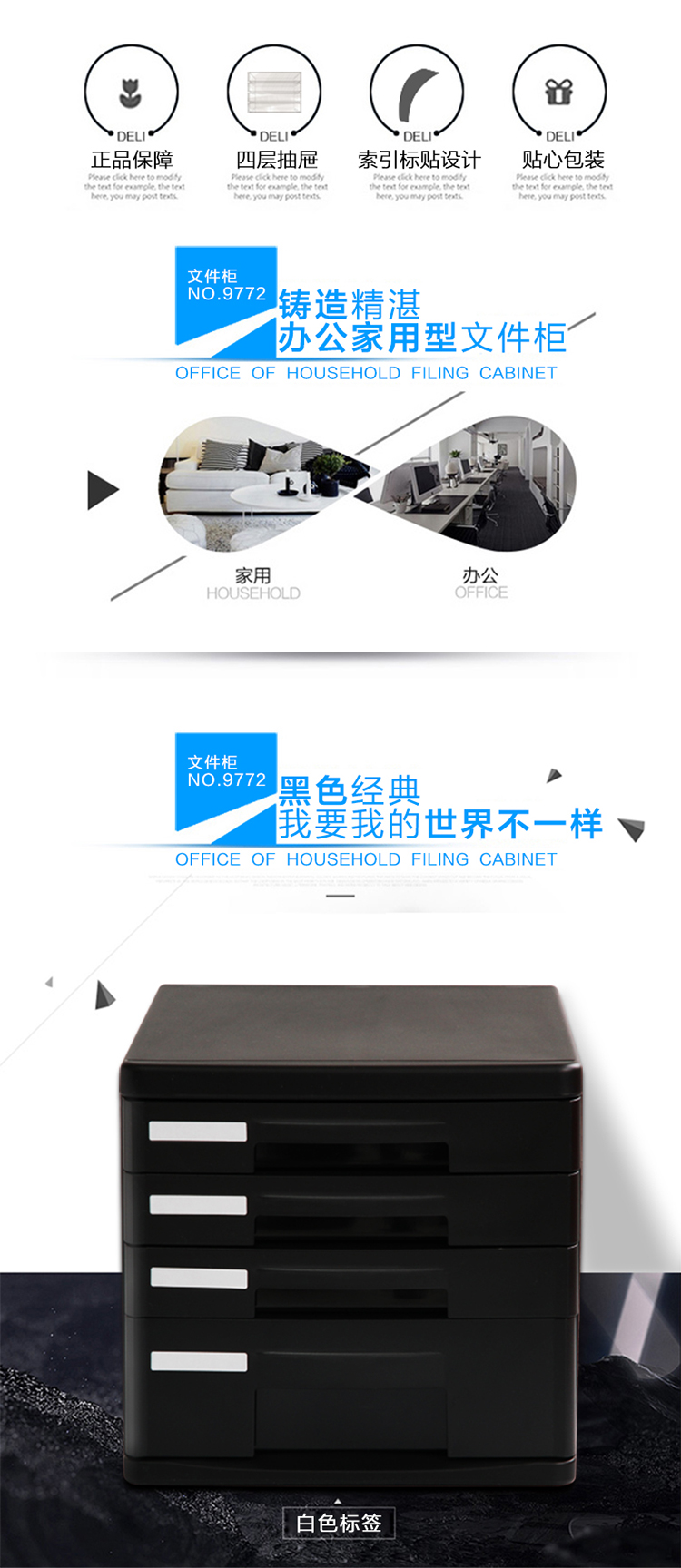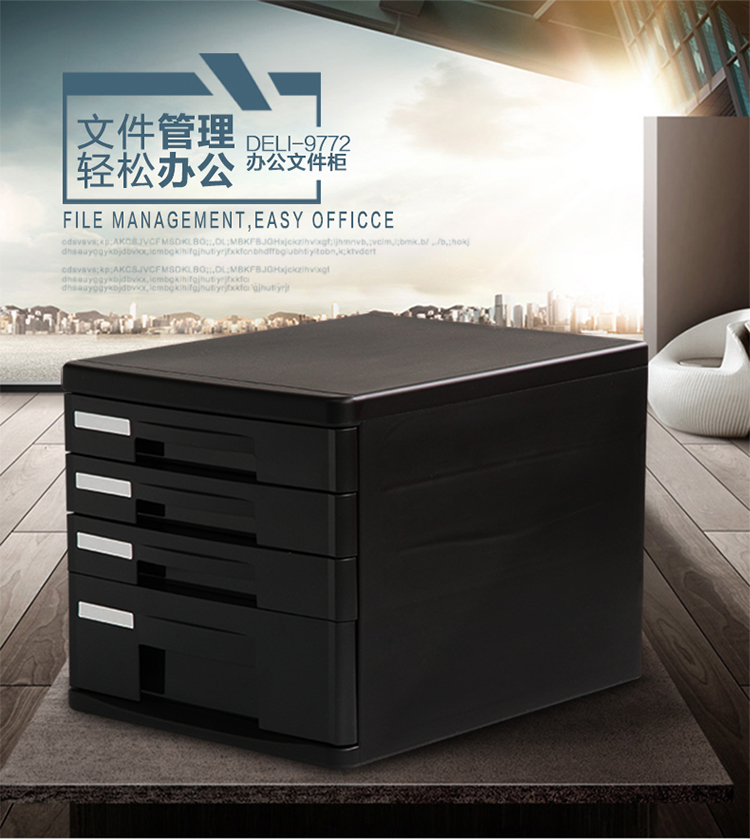 • 商品名称:得力(deli) 9772 4层桌面文件柜 A4拉手资料收纳柜 带索引标签 黑色