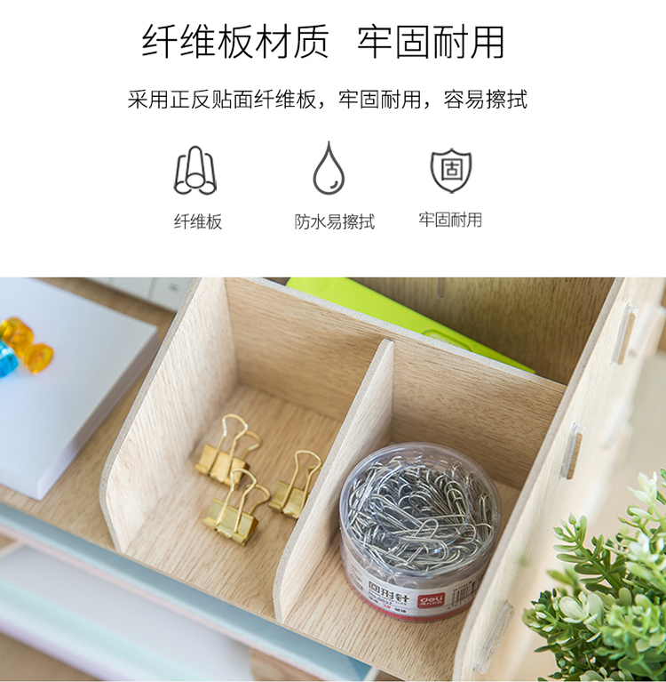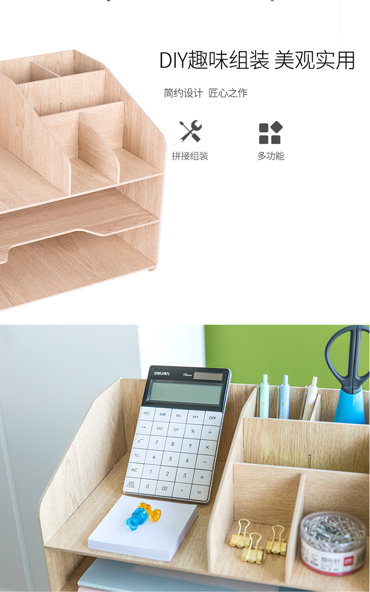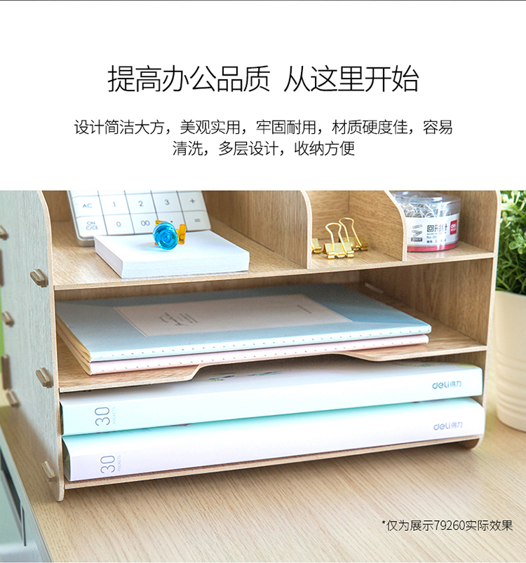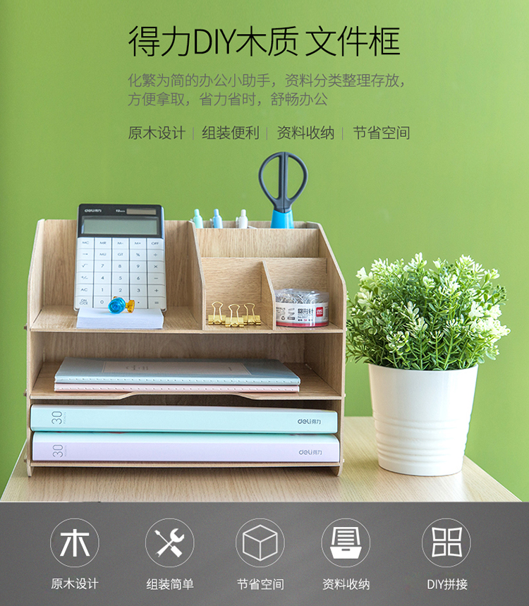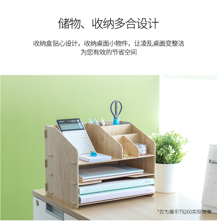 • 商品名称:得力(deli) 79260 木制DIY创意多层组合收纳盒 多功能桌面收纳座/文件框/文件架 原木色