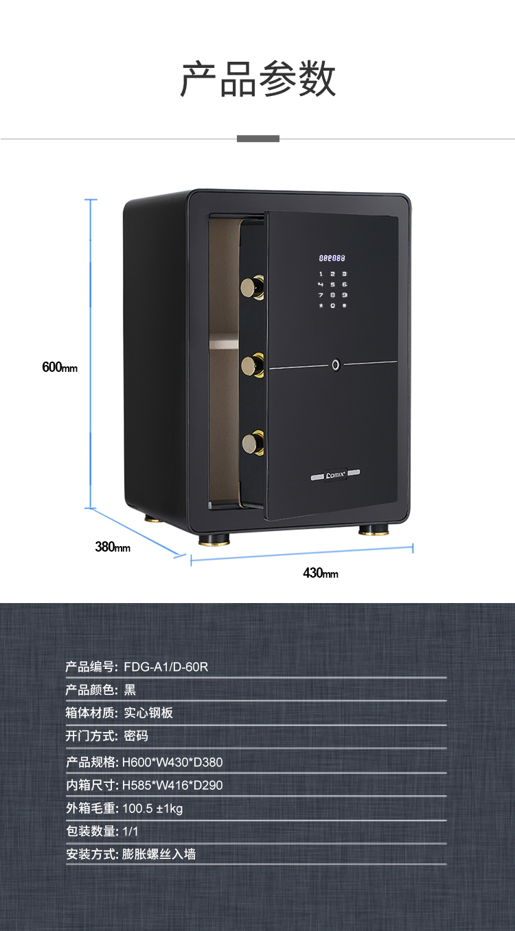 • 商品名称:齐心(COMIX) FDG-A1/D-60R 办公家用保险柜 自动报警指纹密码保险箱 时尚纯平亚克力