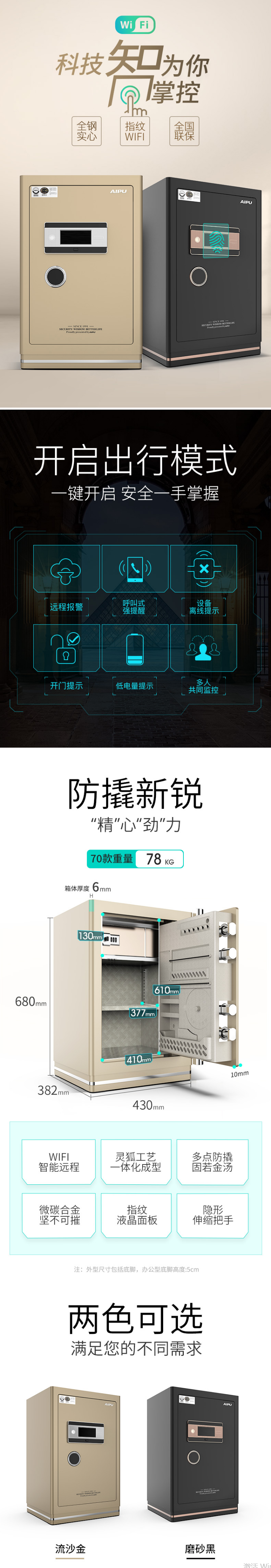 • 商品名称:艾谱(AIPU) FDG-A1/D-73WGZW 保险柜 高80cm全钢防盗保险柜 智能WIFI 防盗密码非机械大型保险箱