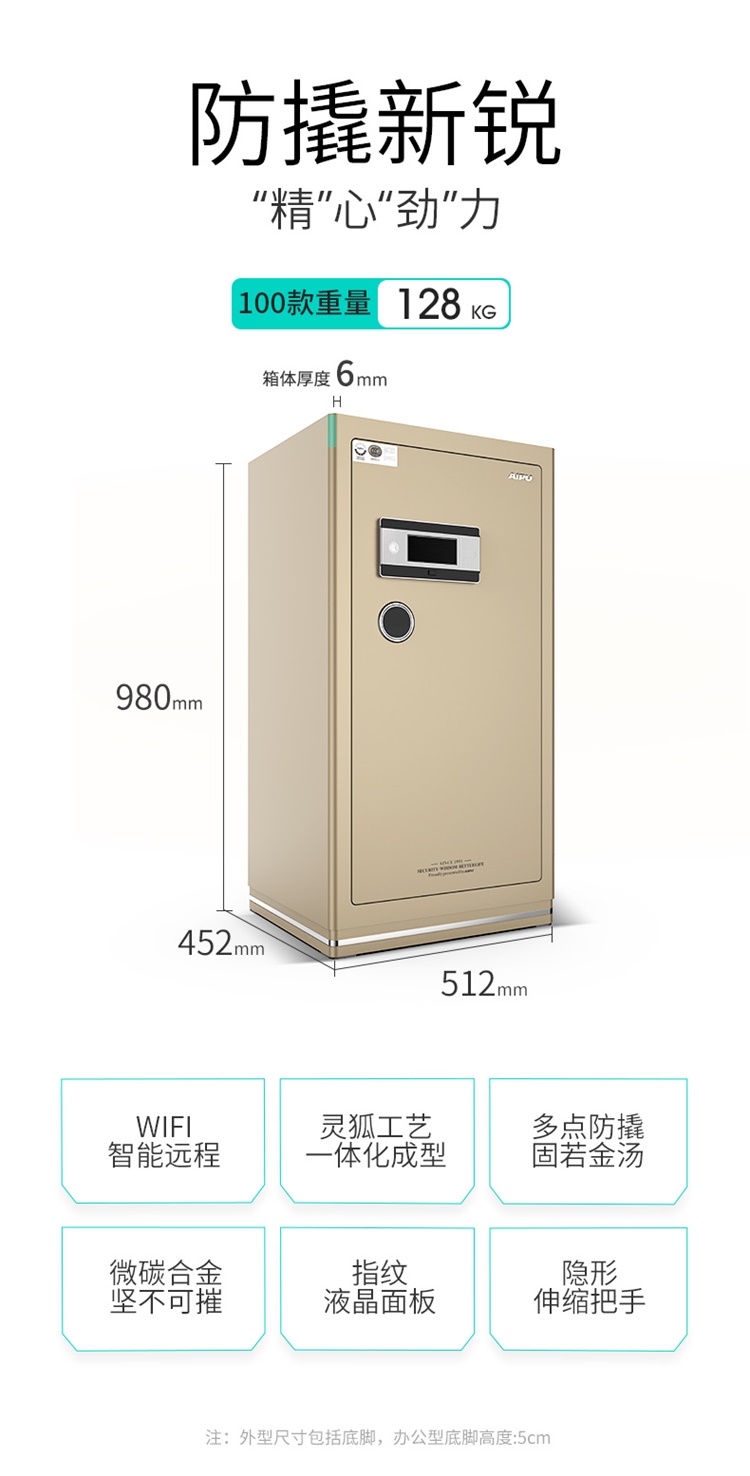 • 商品名称:艾谱(AIPU) FDG-A1/D-93WGZW 保险柜 高100cm全钢防盗保险柜 指纹密码解锁双锁双控 家用大型办公保险箱