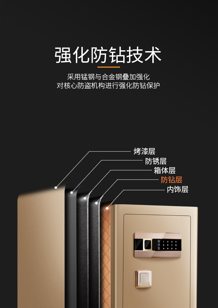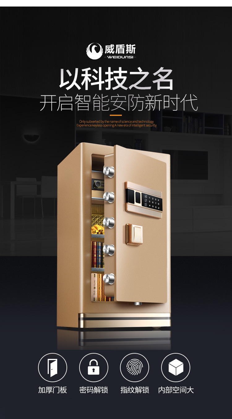 • 商品名称:威盾斯 FDG-A1/D-100 保险柜家用办公指纹电子密码全钢防盗 罗马金