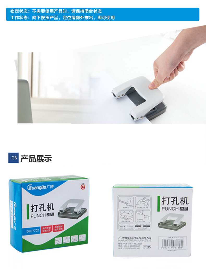 • 商品名称:广博(GuangBo) DKJ7702 中号2孔打孔机打孔器带标尺 颜色随机