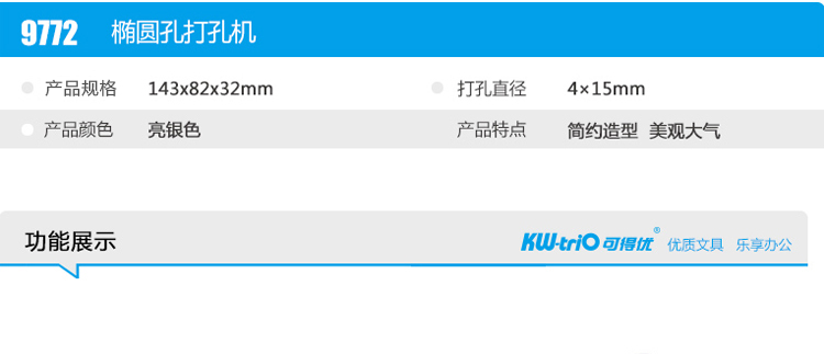 • 商品名称:可得优(KW-triO) 9772 金属打孔机 手握式打孔器 长方形孔椭圆形孔 强力单孔 证件打孔器