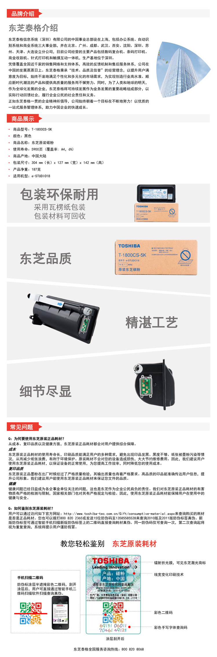 • 商品名称:东芝(TOSHIBA)T-1800CS-5K原装碳粉墨粉(适用于e-STUDIO18)