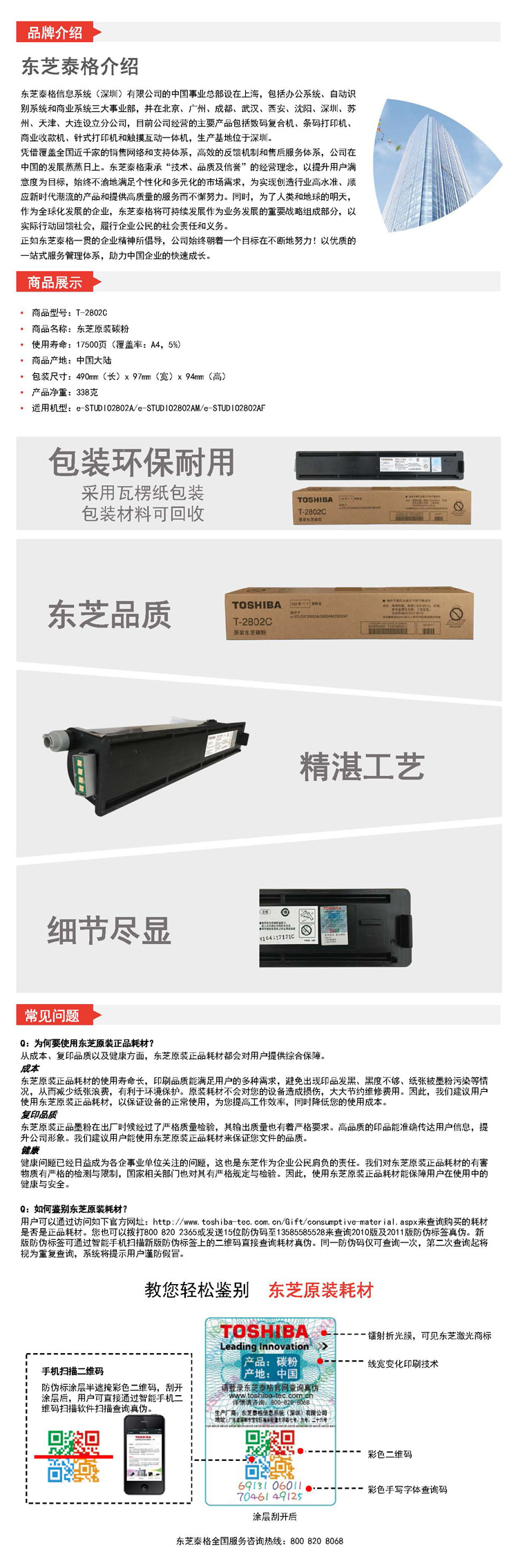 • 商品名称:东芝(TOSHIBA)T-2802C 原装碳粉墨粉(适用于e-STUDIO2802A/2802AM/2802AF)