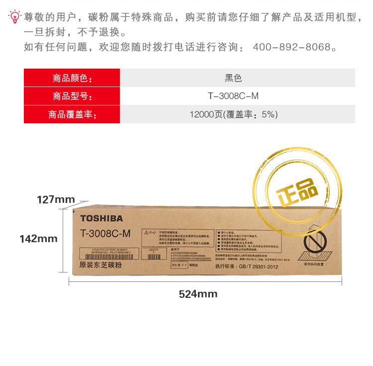 • 商品名称:东芝(TOSHIBA)T-3008C-M 原装碳粉墨粉(适用于e-STUDIO2508A/3008A/3508A/4508A/5008A)