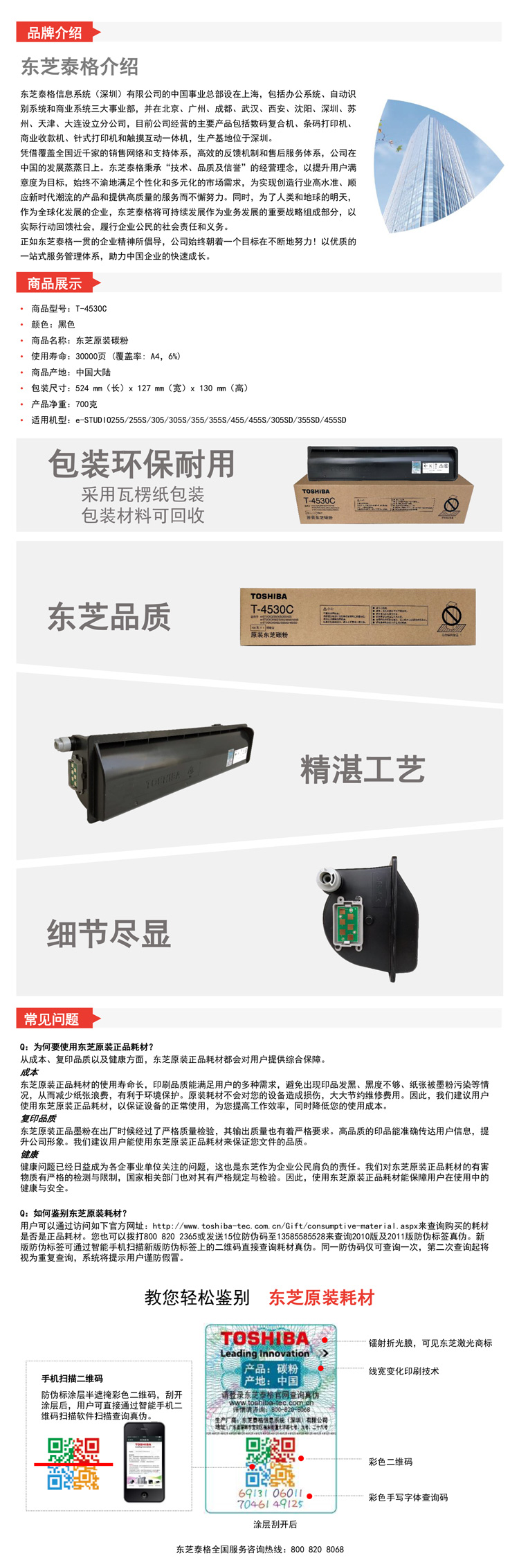 • 商品名称:东芝(TOSHIBA)T-4530C 原装碳粉墨粉(适用255/255S/305/305S/355/355S/455/455S/305SD/355SD/455SD)