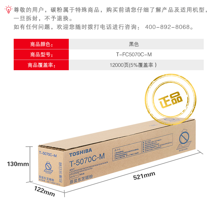 • 商品名称:东芝(TOSHIBA)T-5070CM 原装碳粉墨粉(适用于e507系列)
