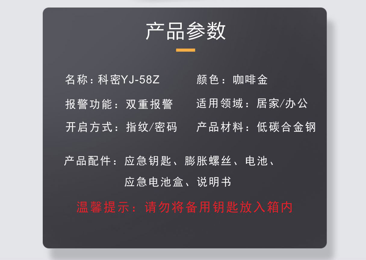 • 商品名称:科密(COMET) XY-58Z 保险柜 58cm办公家用个人保管箱 指纹密码钥匙双层入墙式保险箱