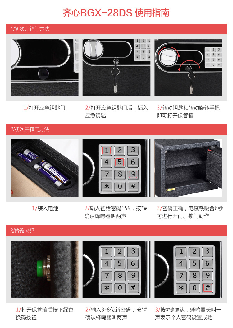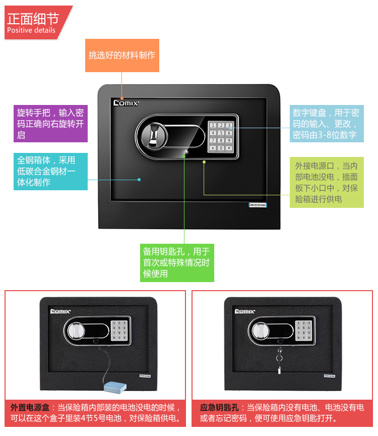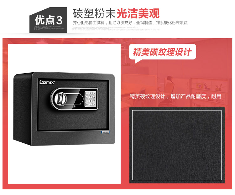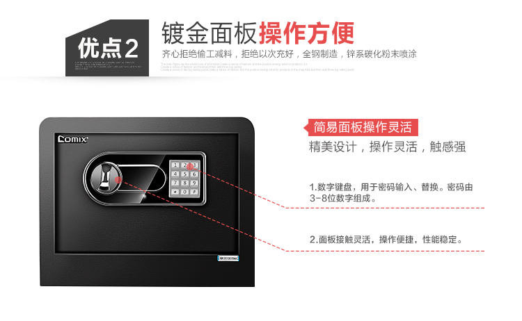• 商品名称:齐心(COMIX) BGX-28DS 保险柜 高28cm智能电子密码保管箱 A3全钢板M级保密保险箱