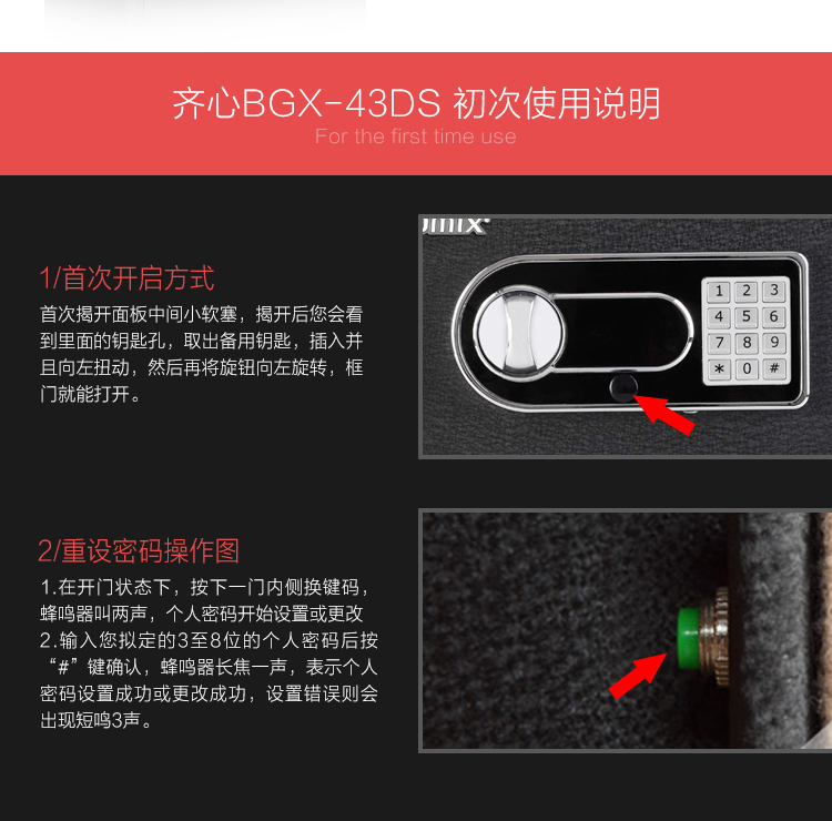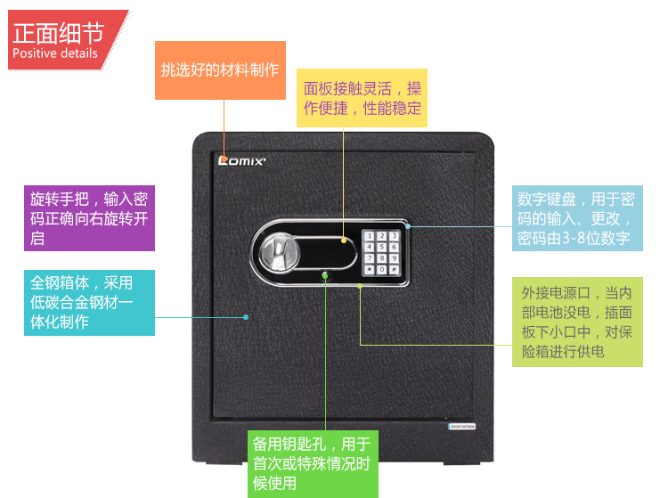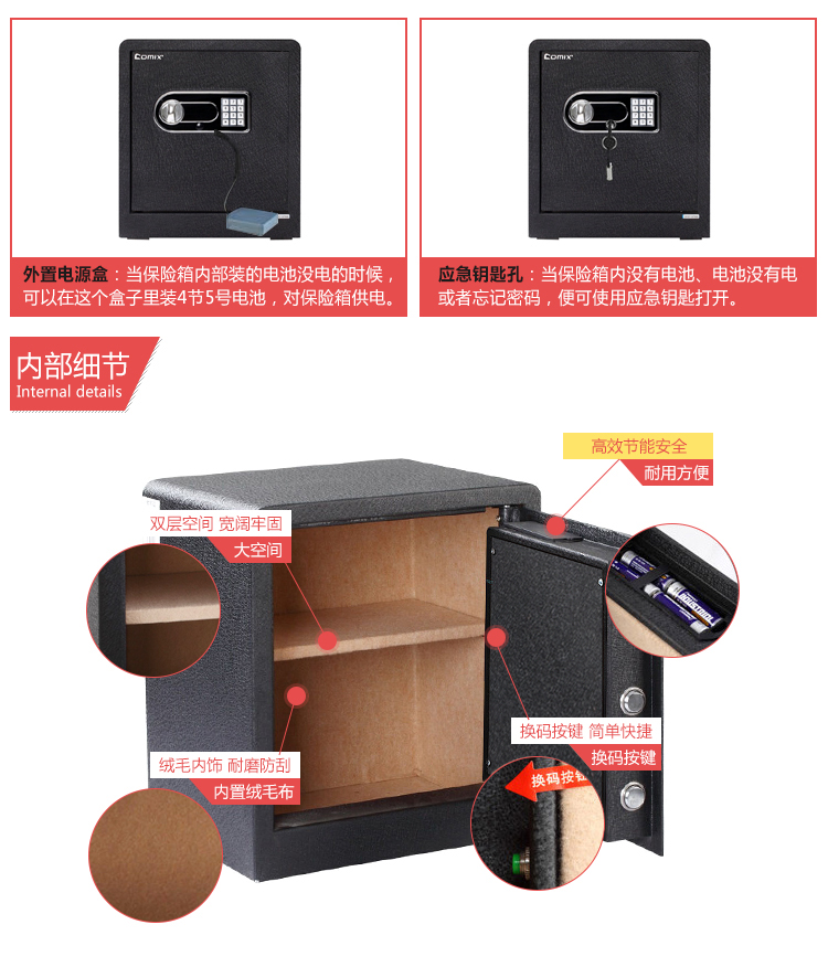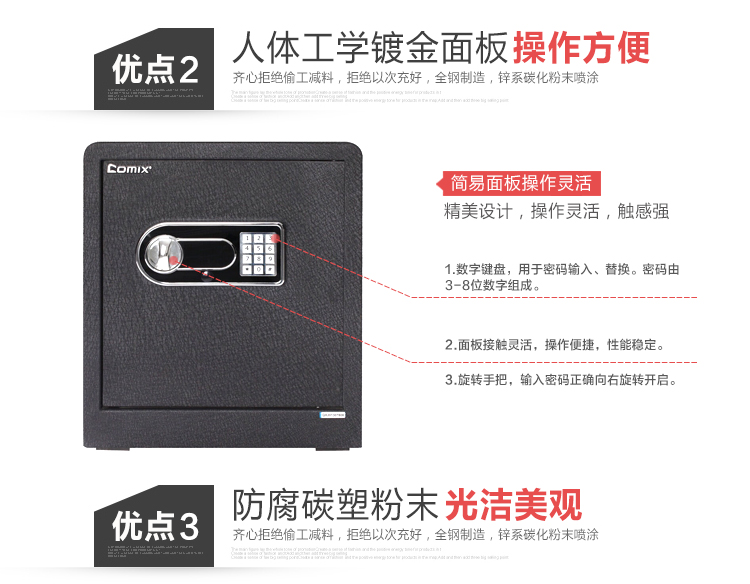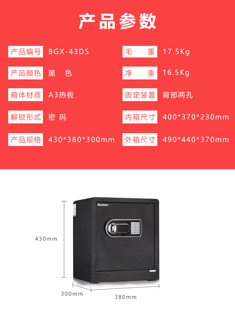 • 商品名称:齐心(COMIX) BGX-43DS 保险柜 高43cm智能电子密码保管箱 A3全钢板M级保密保险箱