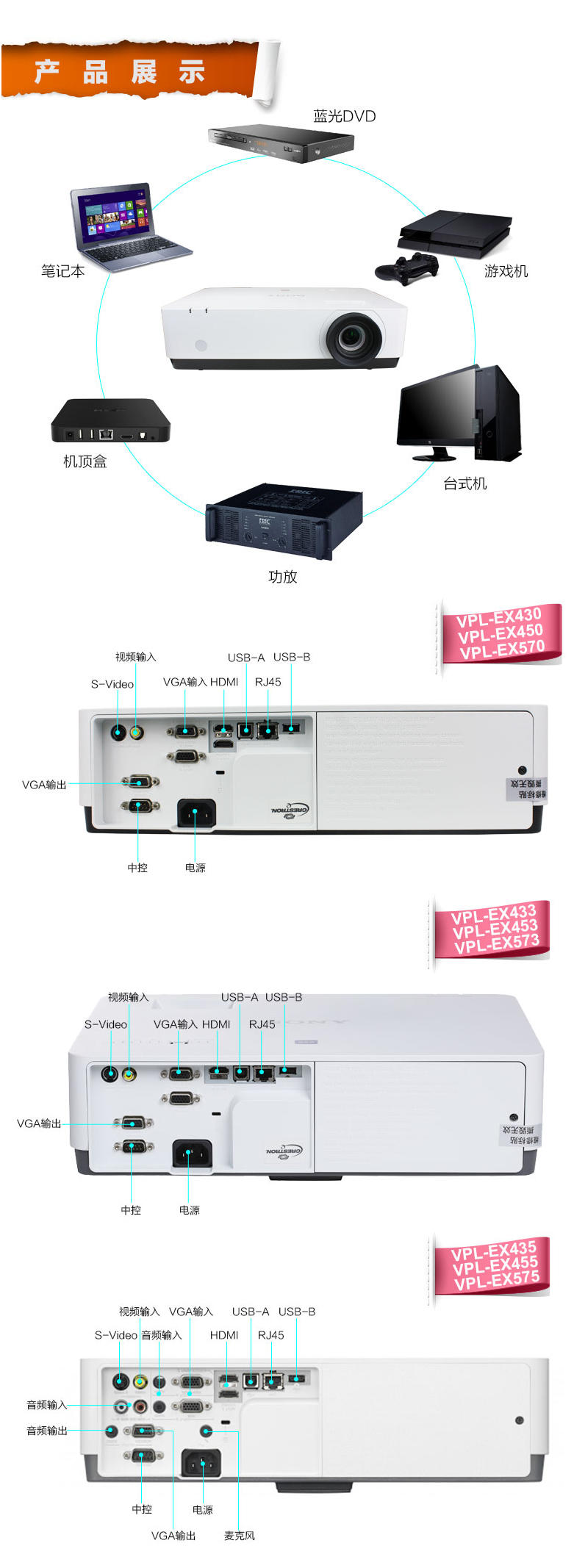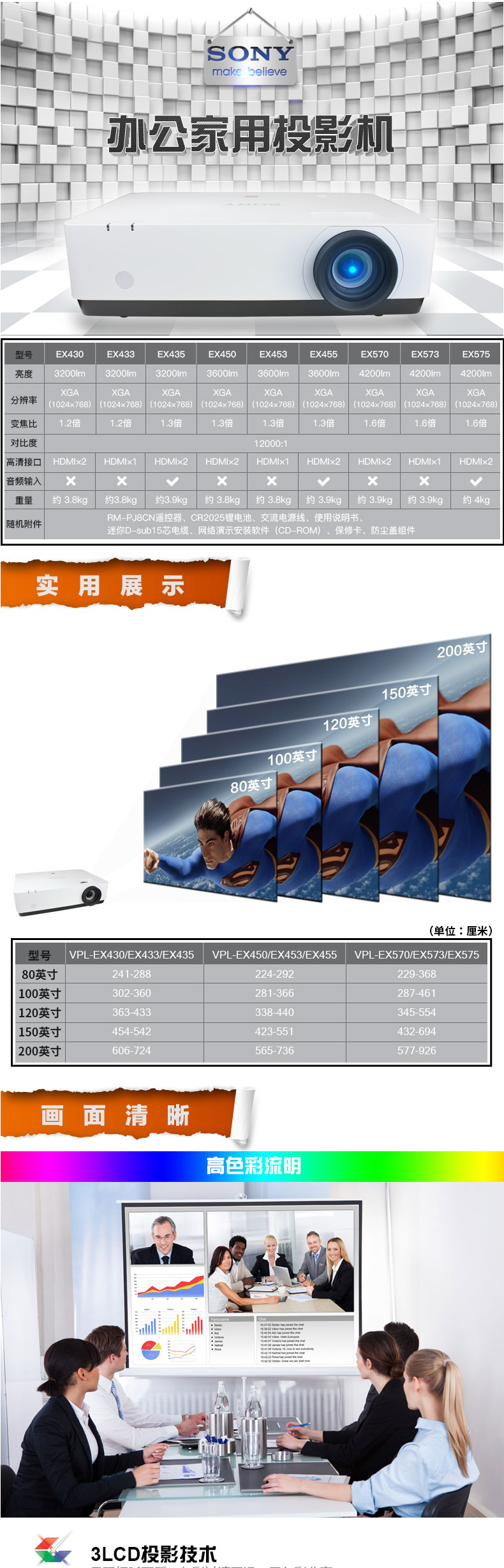 • 商品名称:索尼(SONY) VPL-EX453 投影仪 投影机办公 标清 3600流明 HDMI
