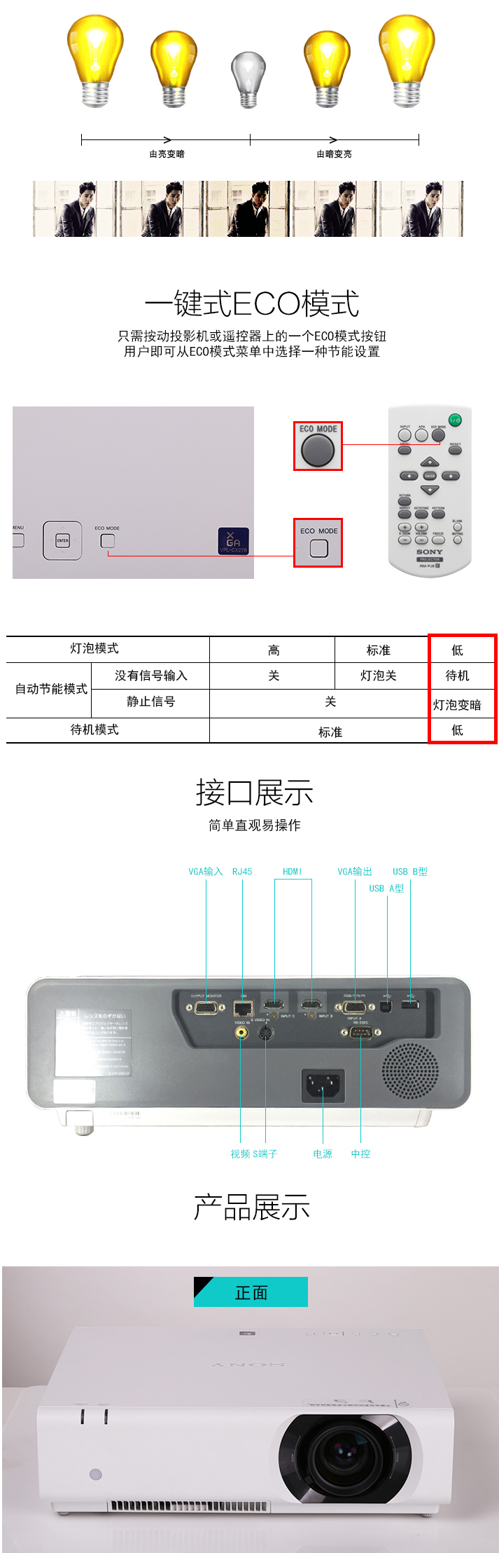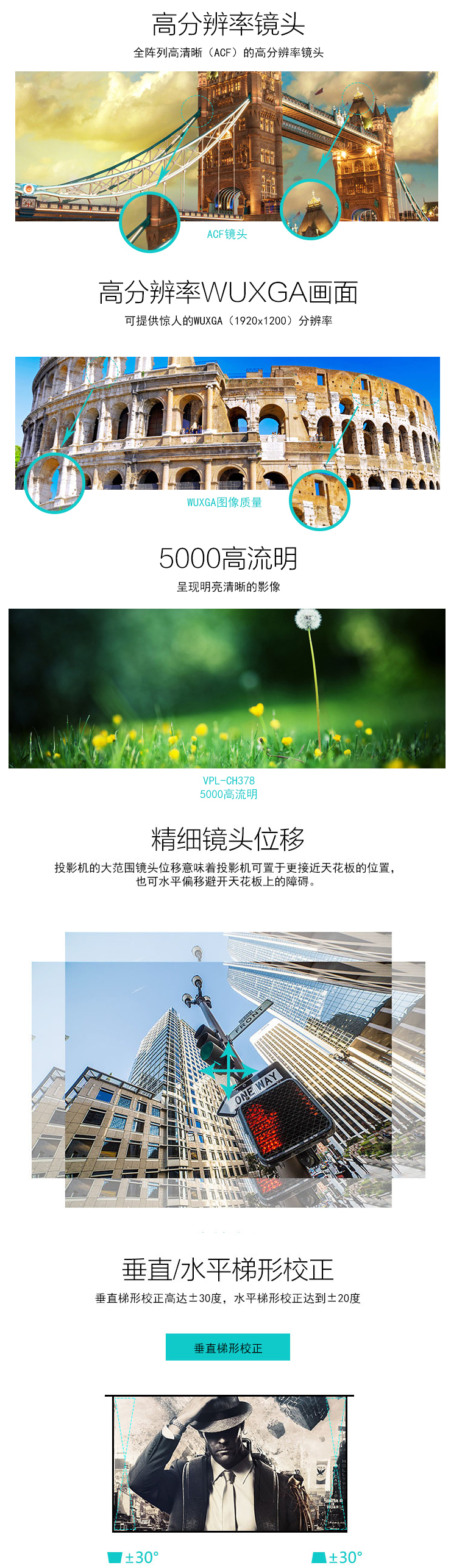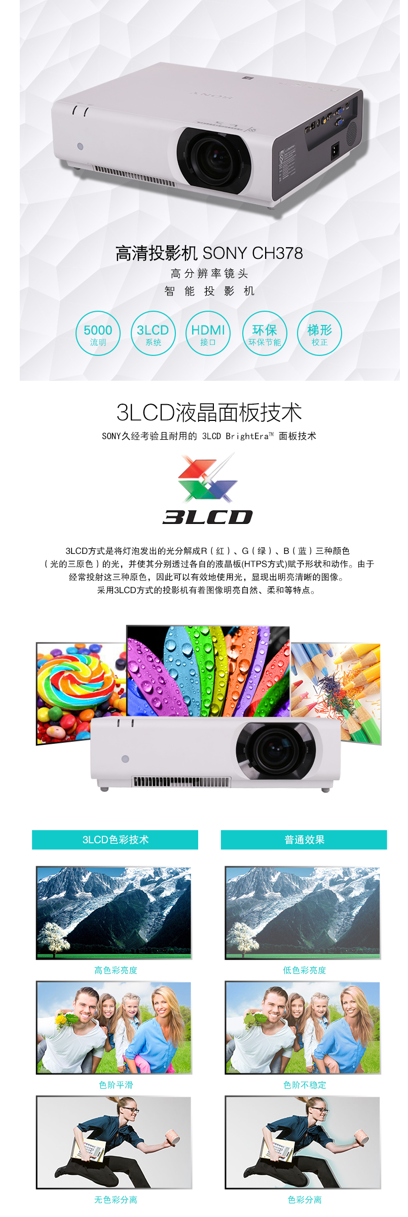 • 商品名称:索尼(SONY) VPL-CH378 LCD投影仪 投影机办公 超高清 5000流明 中大型会议
