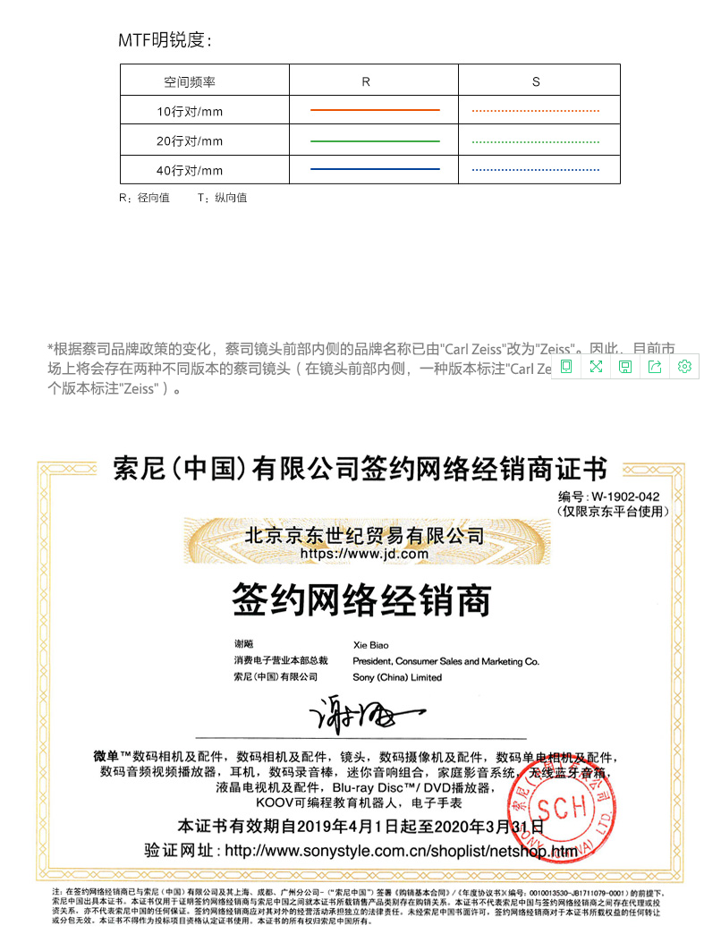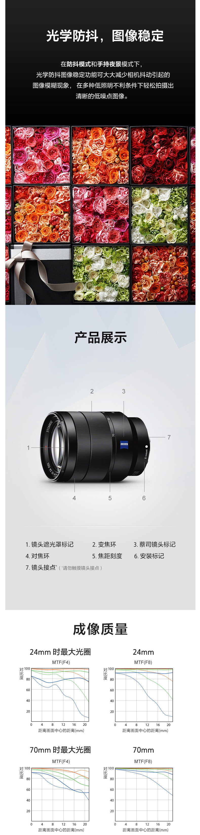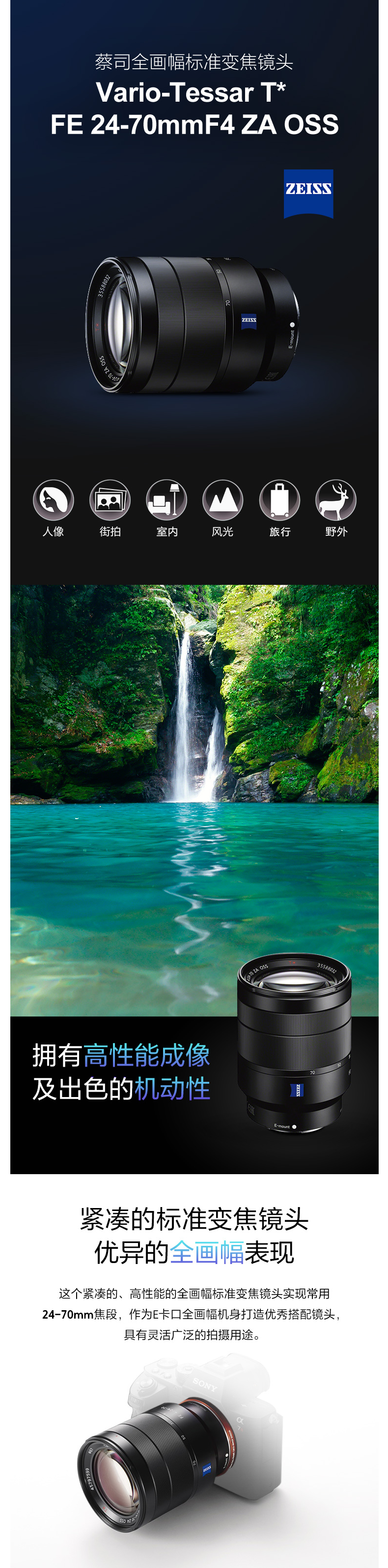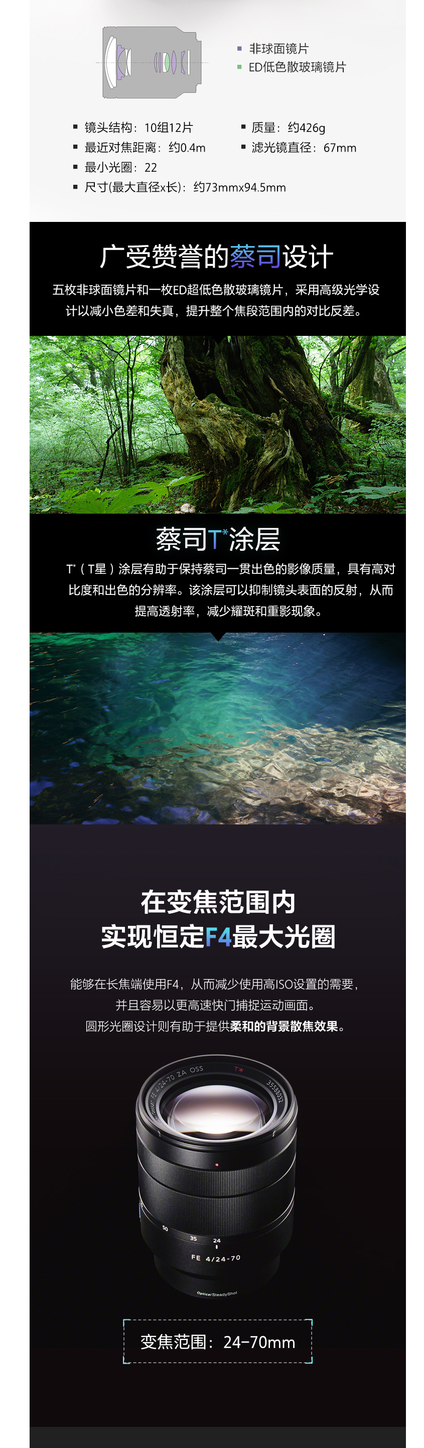 • 商品名称:索尼(SONY) 24-70/4 Vario-Tessar T* FE 24-70mm F4 ZA OSS全画幅蔡司标准变焦微单相机镜头 E卡口