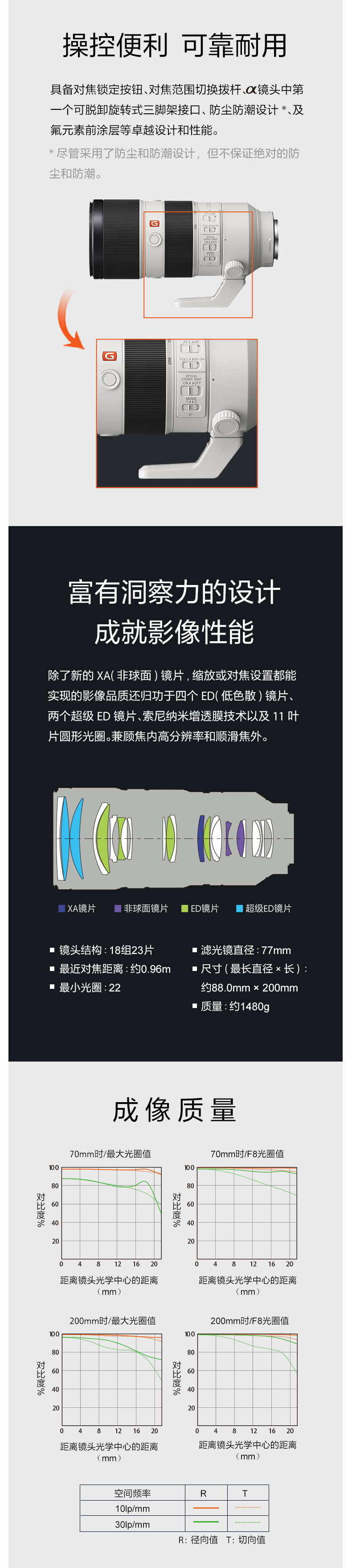 • 商品名称:索尼(SONY) 70-200/2.8 FE 70-200mm F2.8 GM OSS 全画幅远摄变焦G大师镜头 E卡口