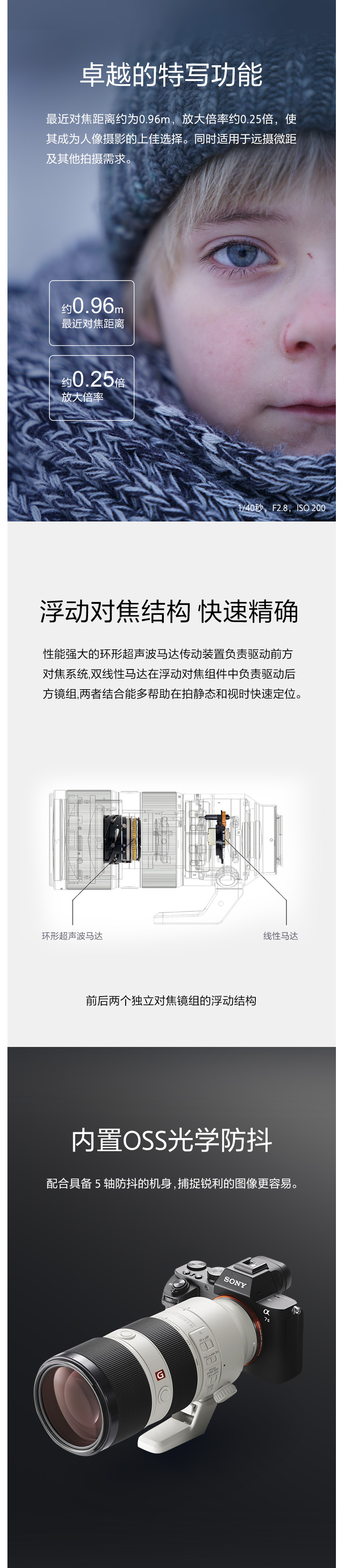 索尼(SONY) 70-200/2.8 FE 70-200mm F2.8 GM OSS 全画幅远摄变焦G大师镜头 E卡口