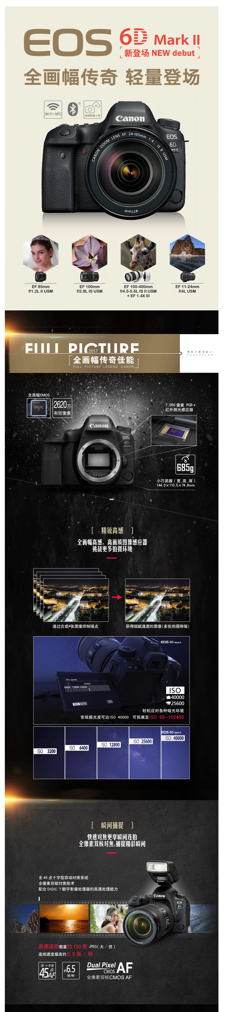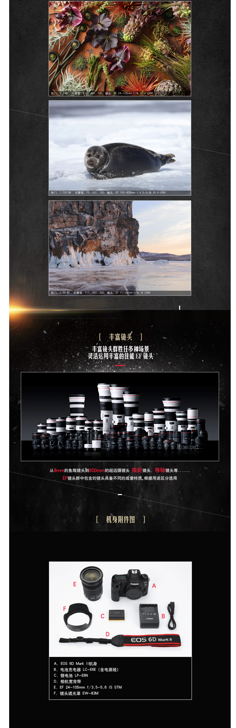 • 商品名称:佳能(Canon) 6DII 24-105STM 单反相机 单反套机 全画幅(EF 24-105mm f/3.5-5.6 IS STM 单反镜头)