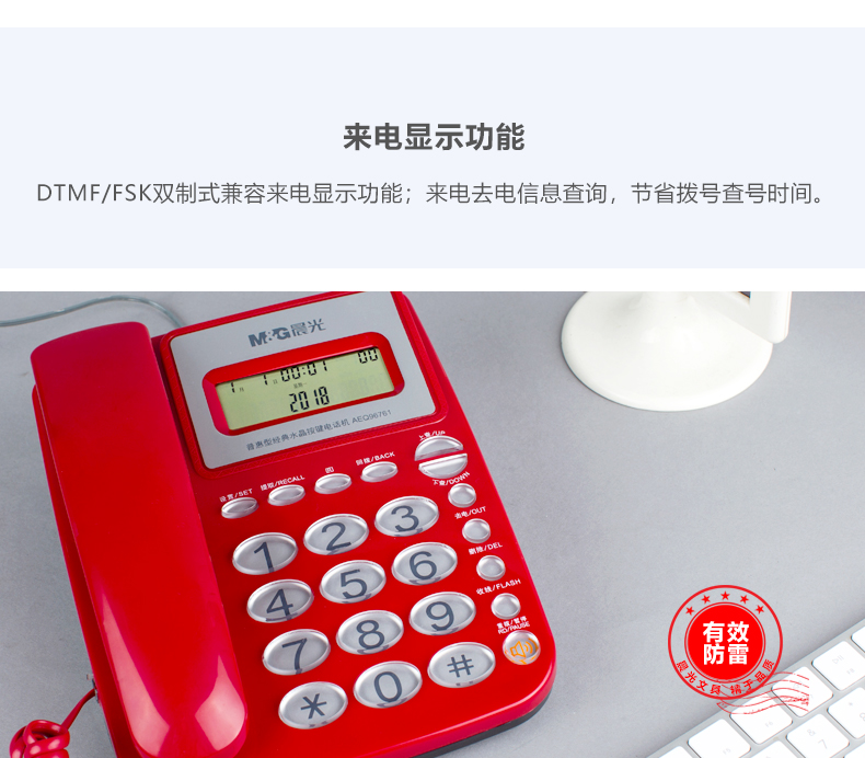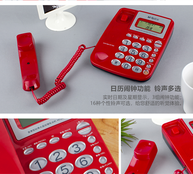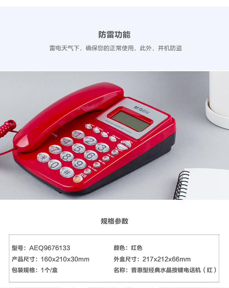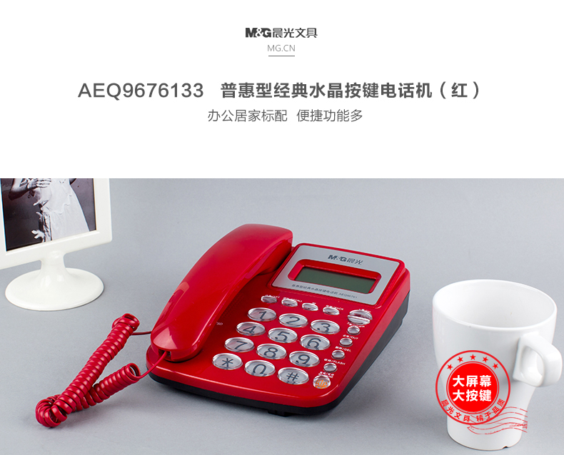 • 商品名称:晨光(M&G) AEQ96761 普惠型经典水晶按键电话机 有线电话机座机固话 红色
